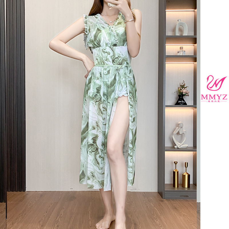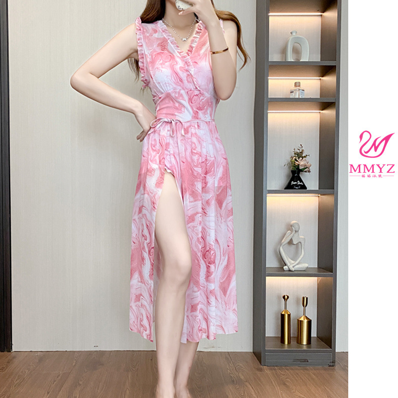 요정 스타일 수영복 여성 인쇄 한 조각 편평한 뿔 주름진 핑크 여름 새로운 온천 휴일 해변 수영복 여성스토어 가기
