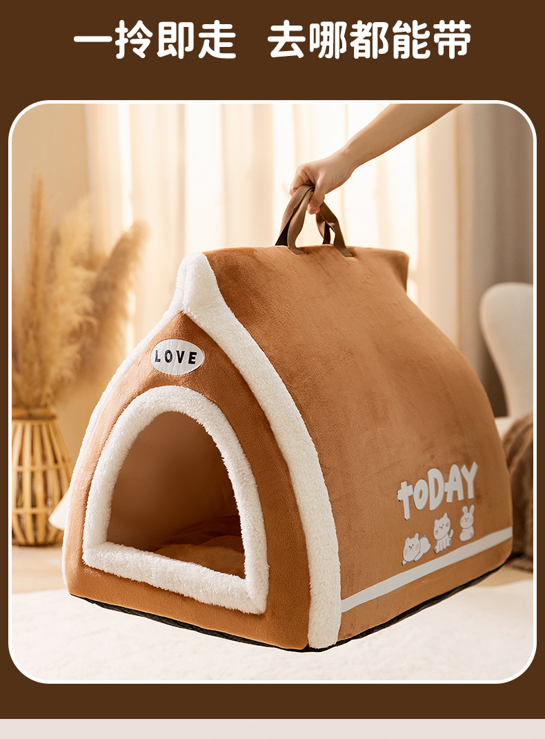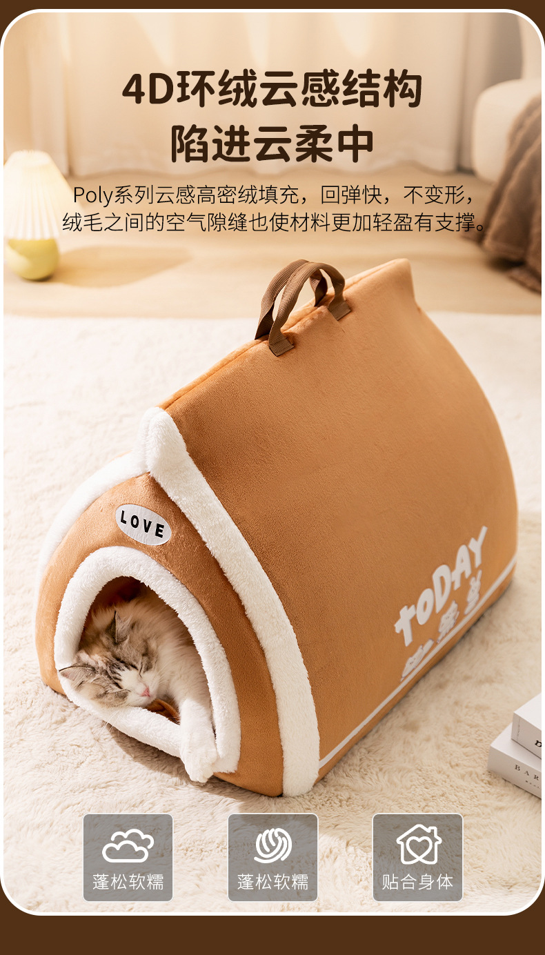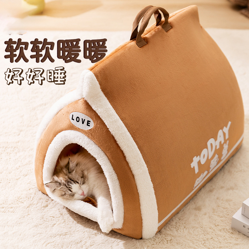 24 새로운 토스트 빵 애완 동물 둥지 오픈 반 폐쇄 가을 겨울 따뜻한 고양이 둥지 개 둥지 개 고양이 침대스토어 가기