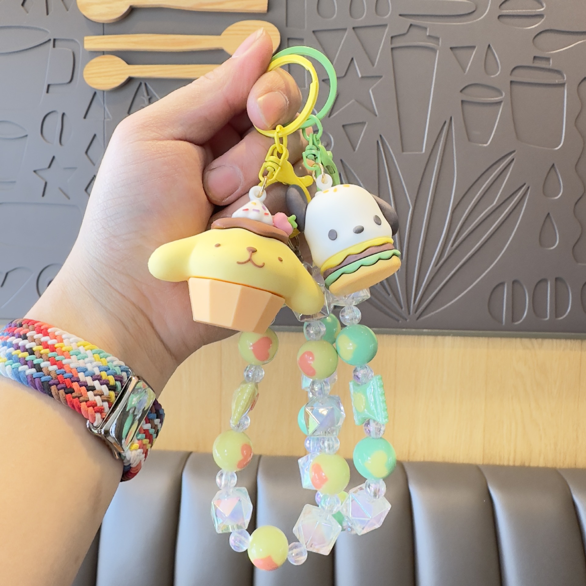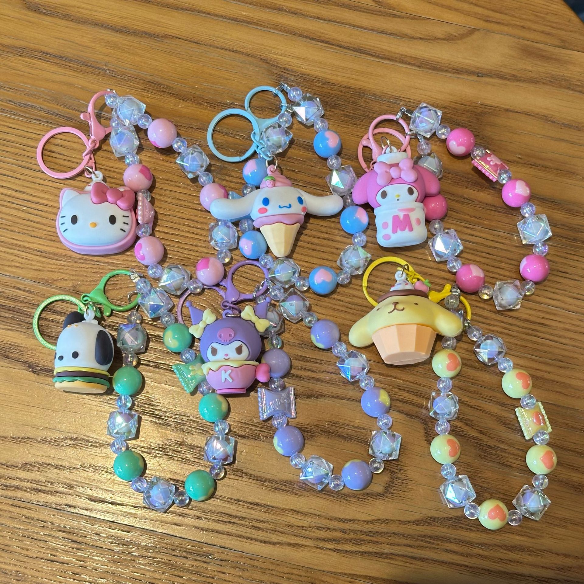달콤하고 시원한 간식 산리오 캔디 비즈 핸드폰 스트랩 귀여운 키티 고양이 가방 장식 키체인 인형뽑기 블라인드 박스