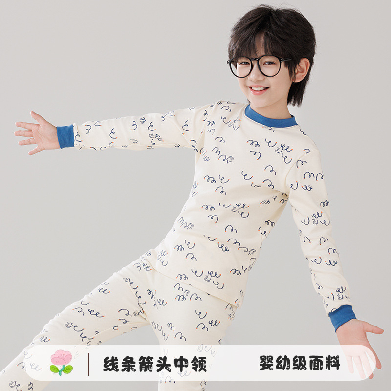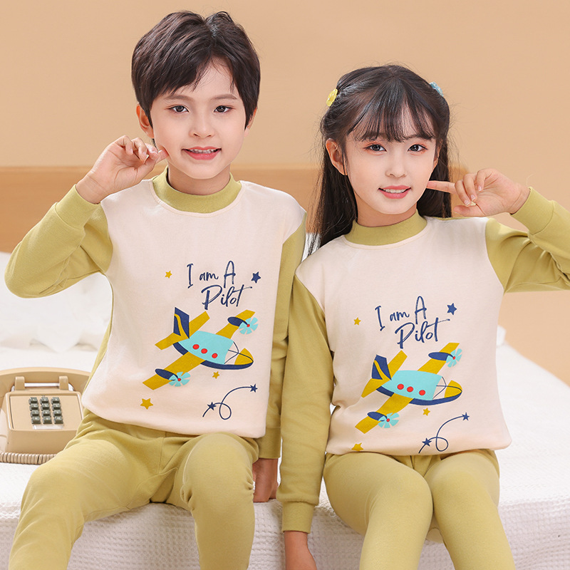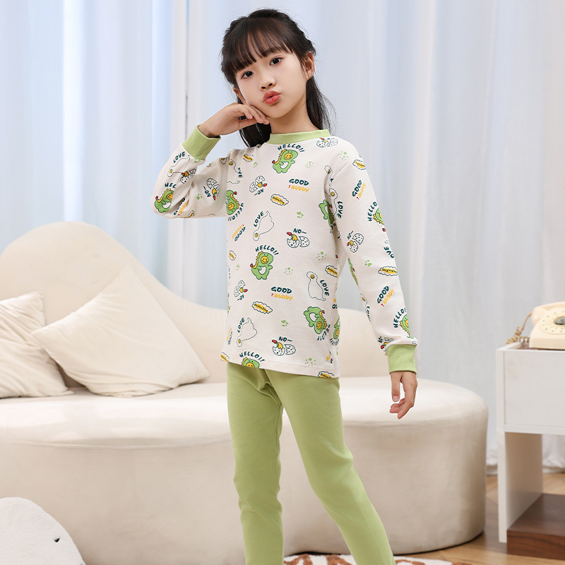 가을 옷과 바지 가을 새로운 십대 중간 칼라 코튼 속옷 세트 큰 아이 만화 인쇄 홈 베이스