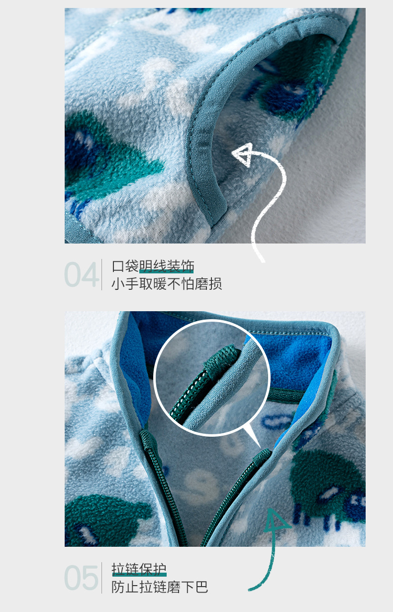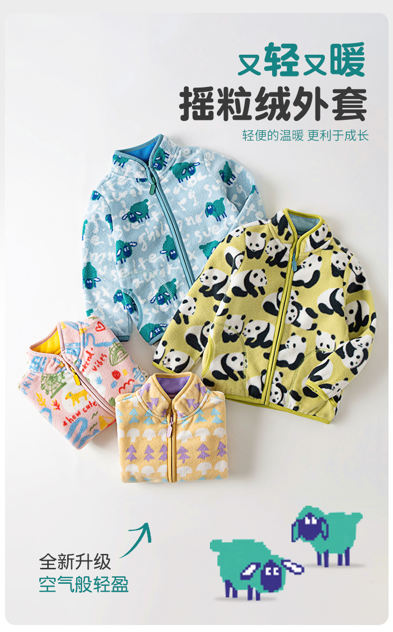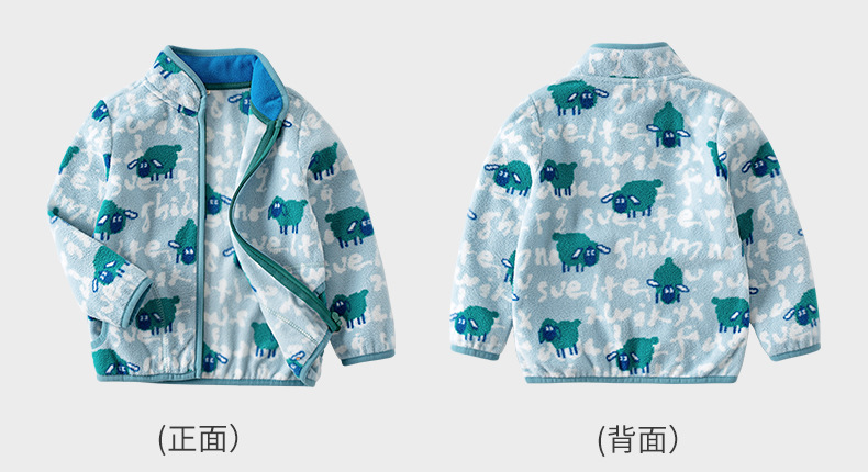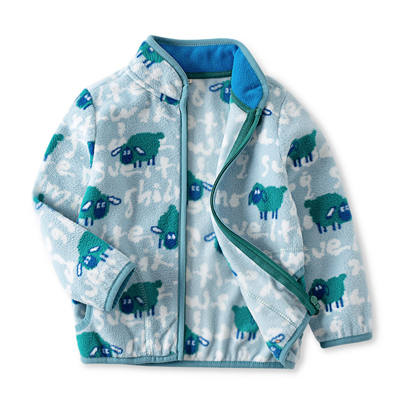"작은 양" 블루 플리스 재킷 2024 가을 아기 만화 편지 남자와 여자의 양털 재킷스토어 가기