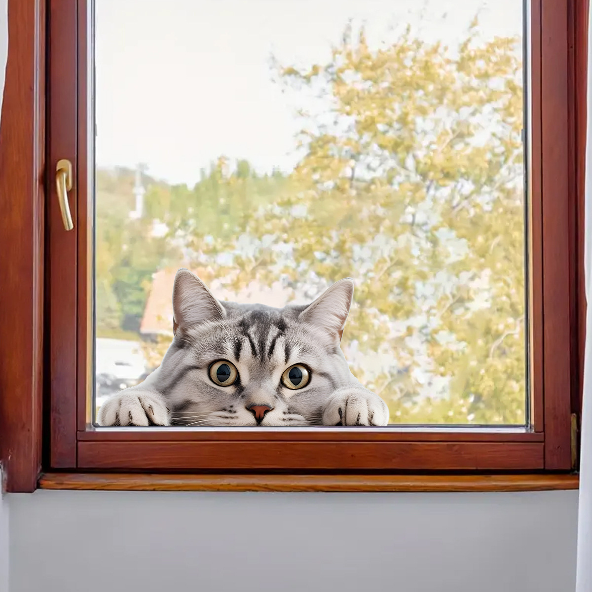 귀여운 새끼 고양이 사진 자기 접착 창 스티커 양면 시각적 애완 동물 가게 문 및 창문 유리 장식 스티커 BR0824C