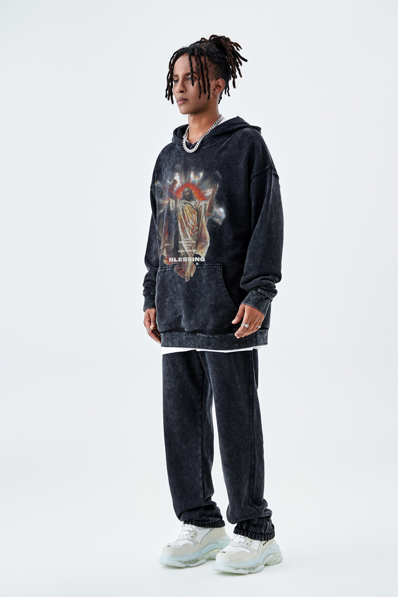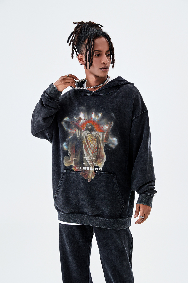 TILANI 남자 가을 예수 피겨 씻은 두건 원피스 남녀 미국 하이 스트리트 420G 테리 루즈 원피스스토어 가기