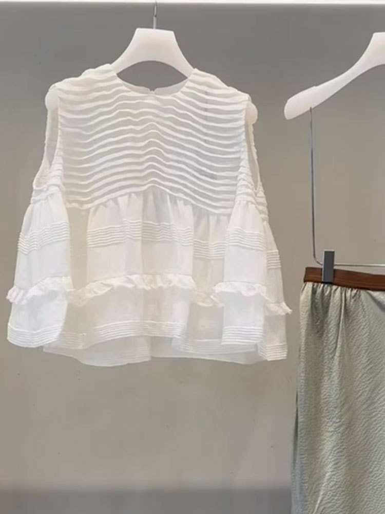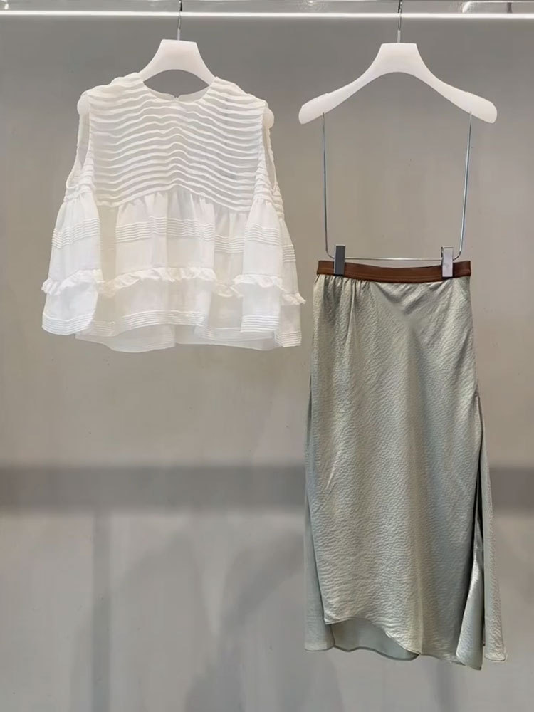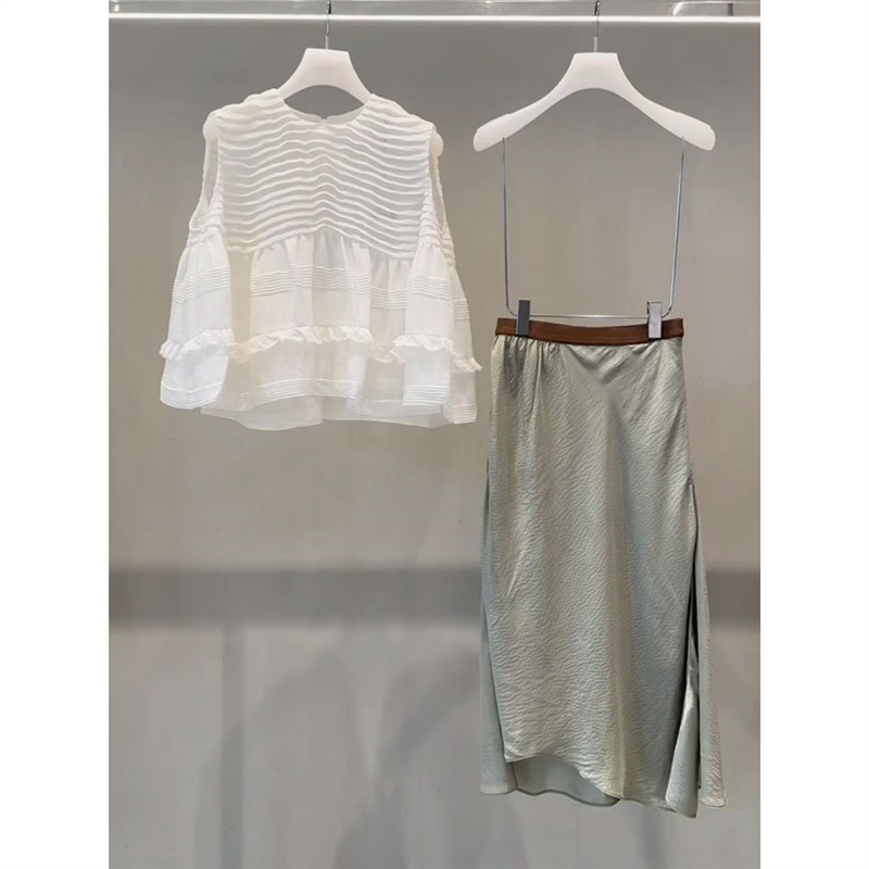 2024 세트 작은 키 큰 패션 흰색 셔츠 넓은 다리 바지 세트와 함께 YT360929 여름 착용