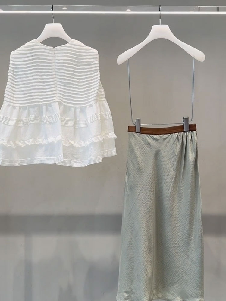 • 흰색 셔츠 + 민트 그린 스커트