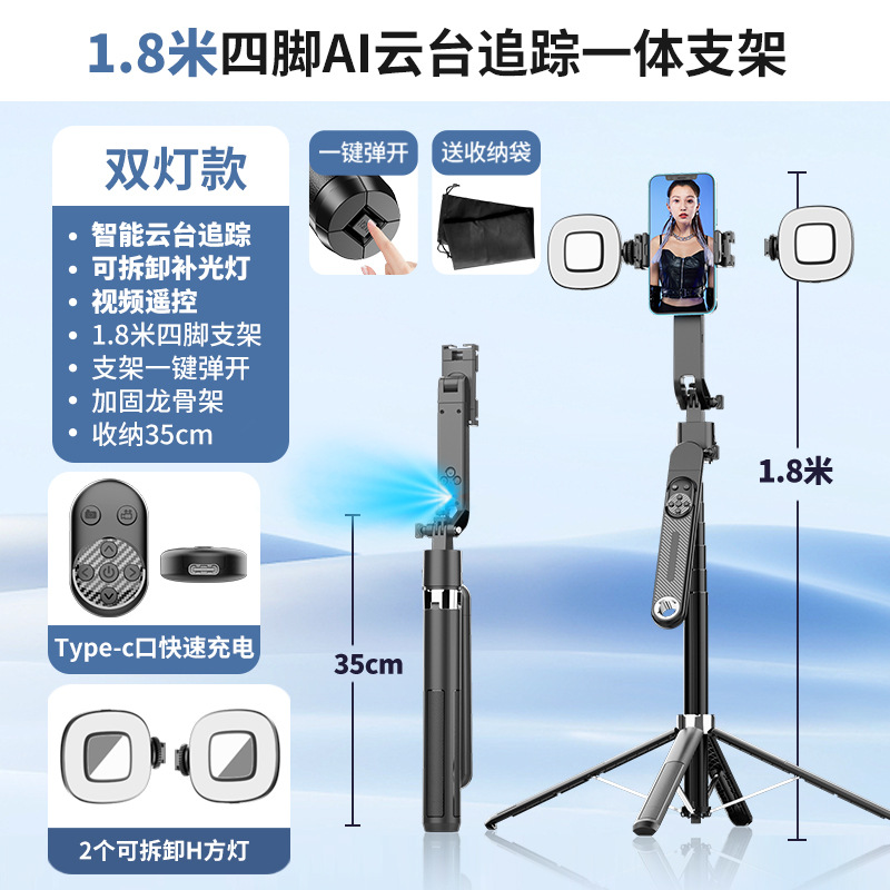 • Q515TK-H2 (1.8m + 이중 사각 필라이트 페이스 추적 + Douyin 충전식 리모콘 + 금속 용골 브래킷 + 원버튼 팝업 + 보관 가방)