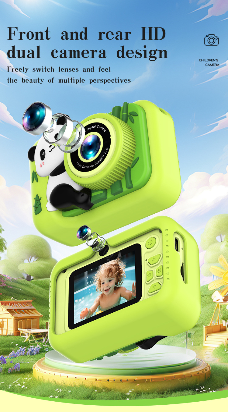 새로운 만화 팬더 어린이 디지털 소형 카메라 전면 및 후면 HD 더블 카메라 미니 카메라 비디오 사진 Q8스토어 가기
