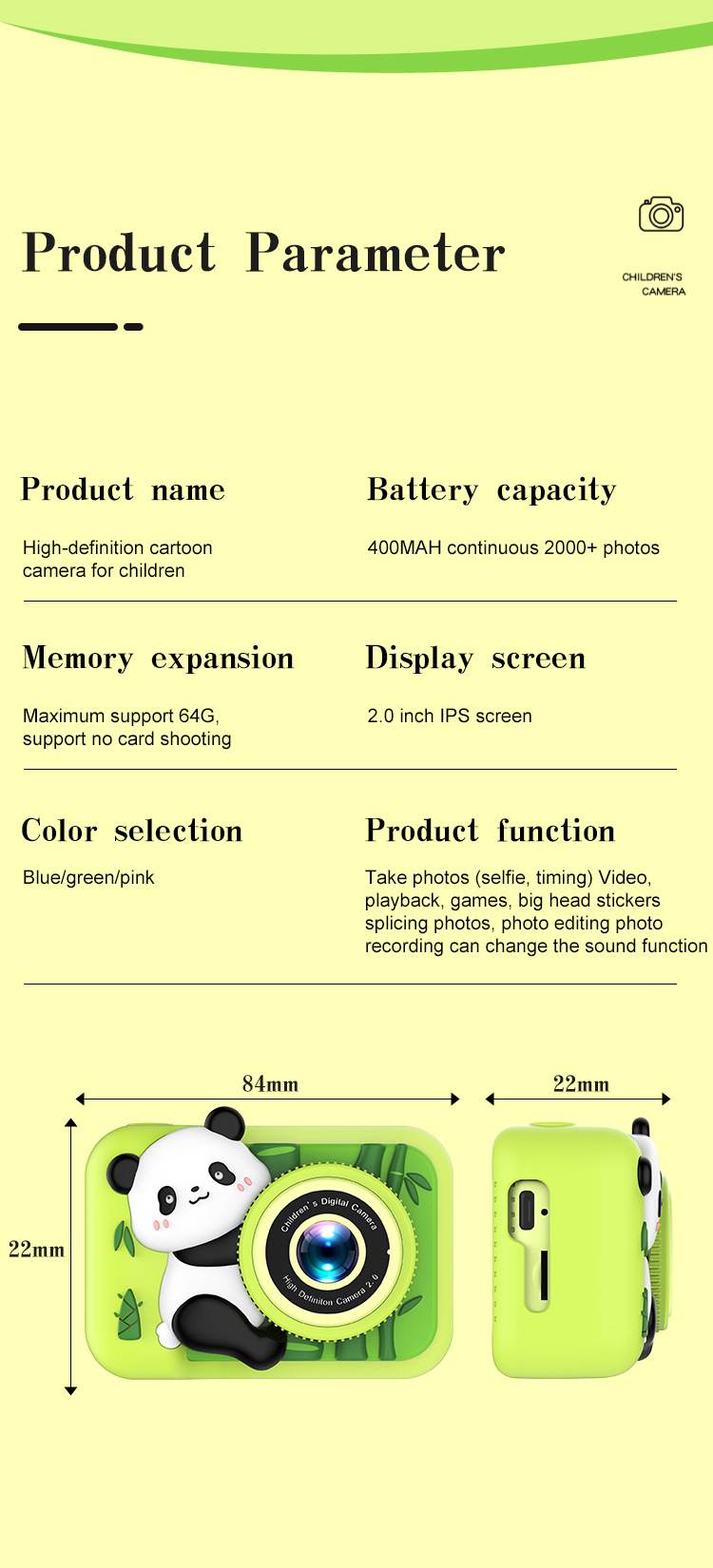 温馨提示:儿童相机都需要加内存卡才可以拍照录像!