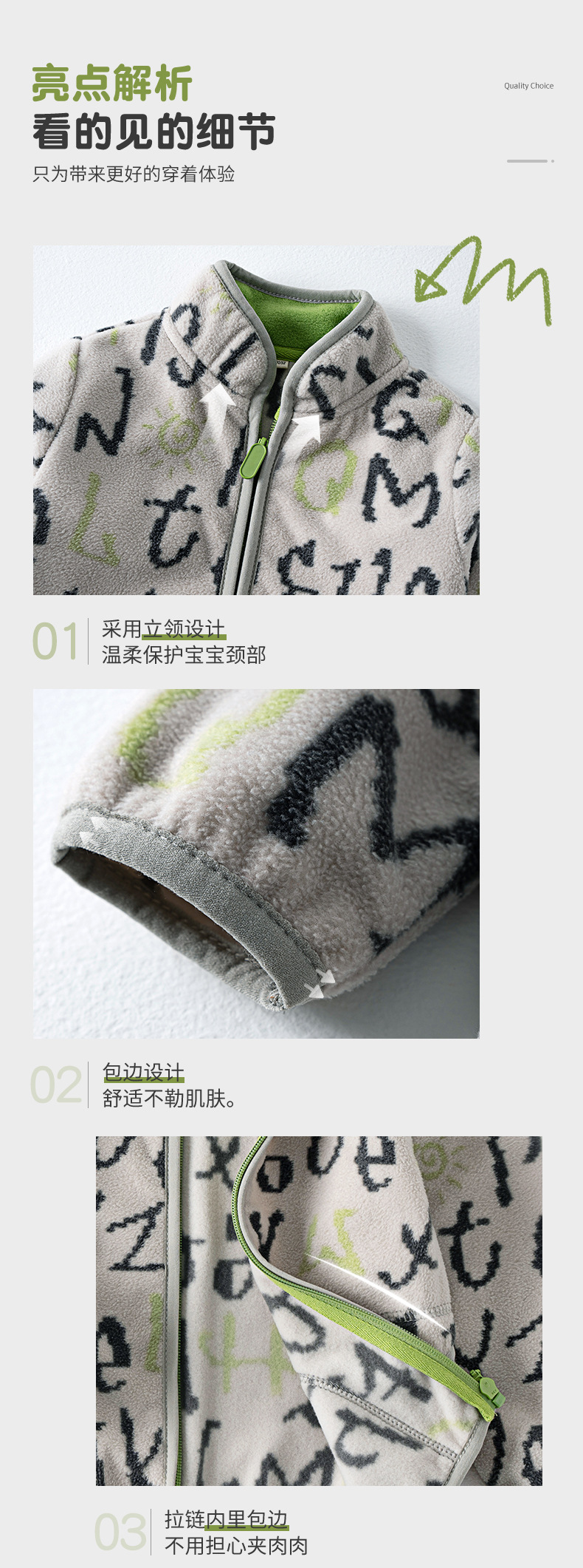"녹색 편지" 스탠드 칼라 양털 재킷 2024 가을 새 아기 간단한 회색 소년 wy1599스토어 가기