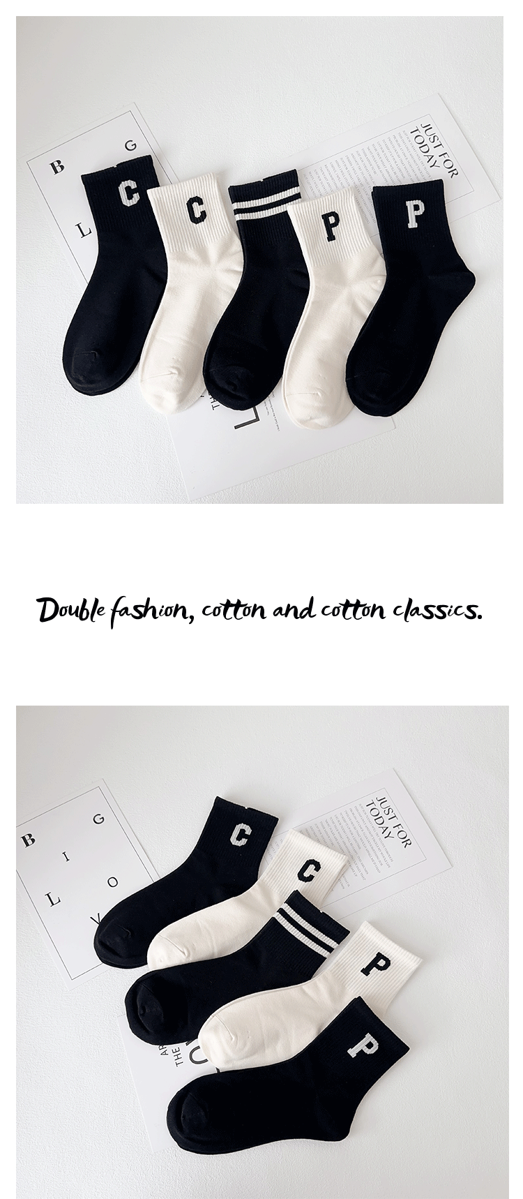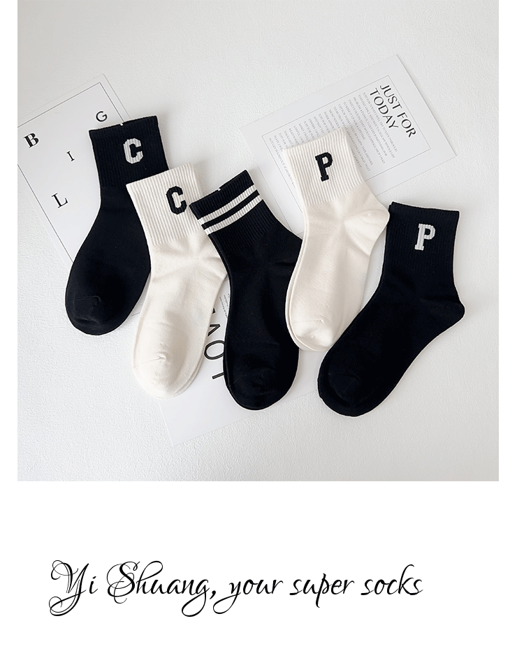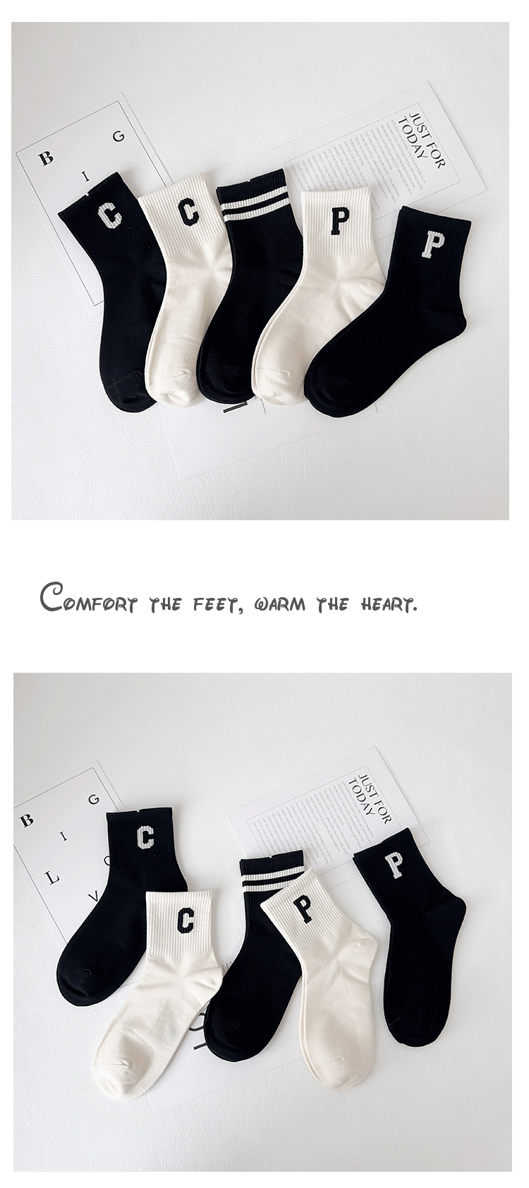 Yi Pair Girls 'Socks 가을과 겨울 새로운 한국식 편지 미드 튜브 양말 빗질 코튼 큰 어린이 스포츠 양말 뼈없는 양말 유행 양말스토어 가기