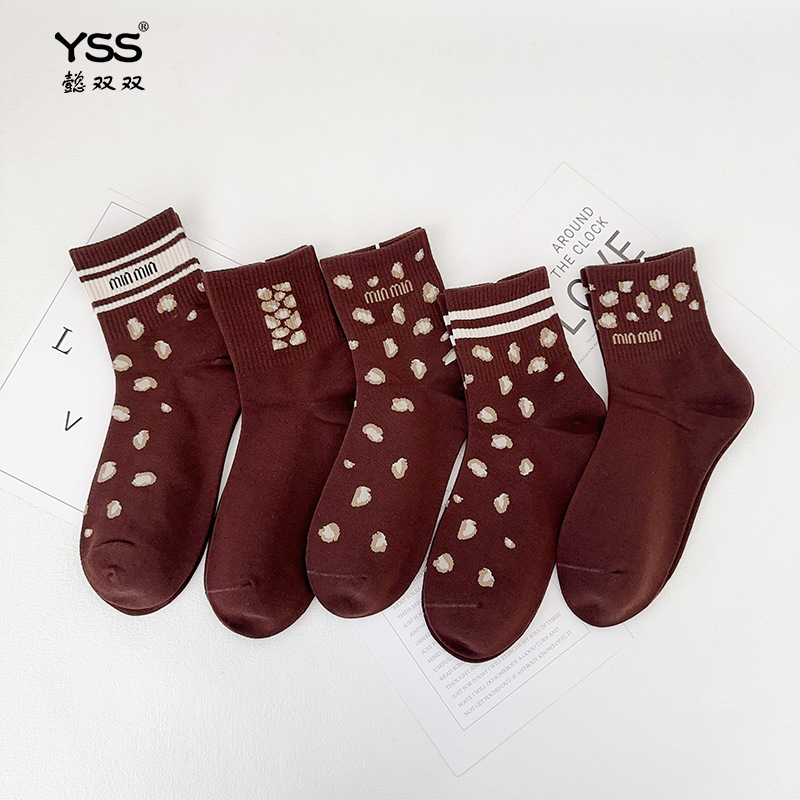 Yi Pair Girls 'Socks 가을과 겨울 새로운 한국식 편지 미드 튜브 양말 빗질 코튼 큰 어린이 스포츠 양말 뼈없는 양말 유행 양말