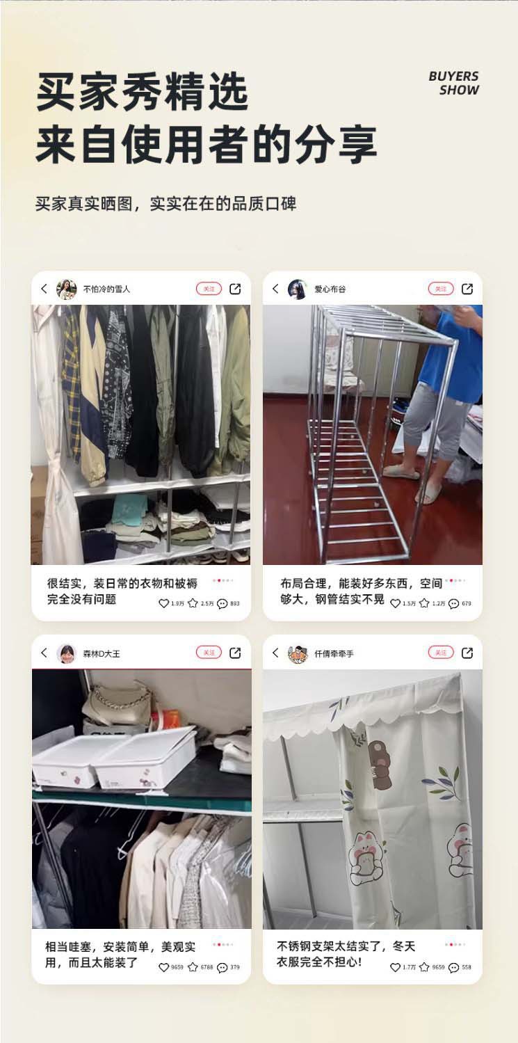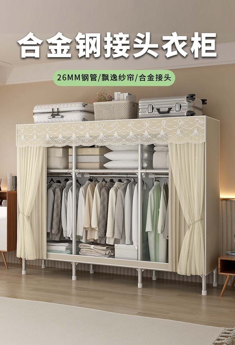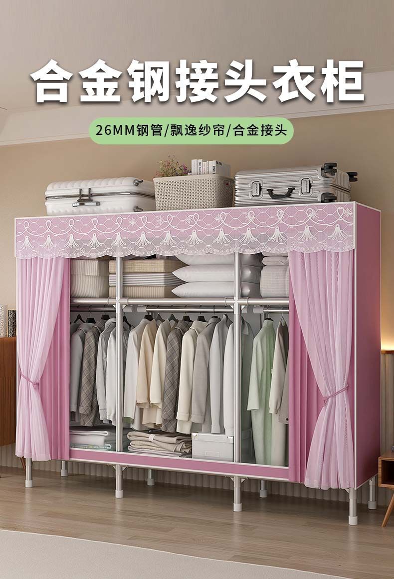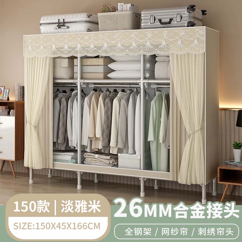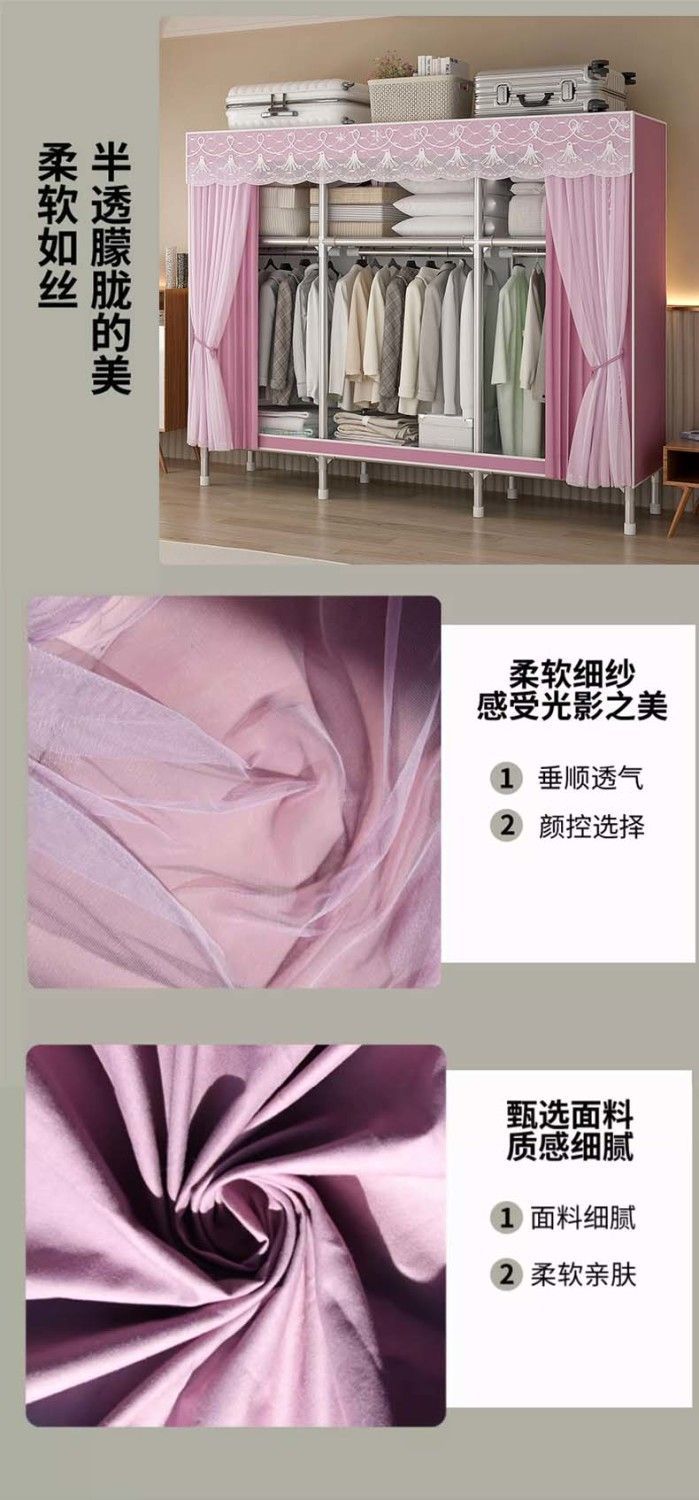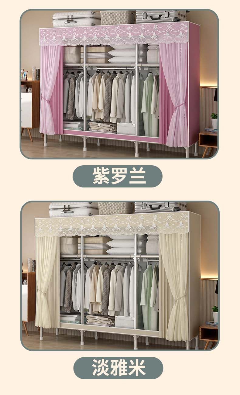 간단한 천 옷장 두꺼운 전체 강철 프레임 거즈 커튼 보관 랙 옷장 조립 간단한 옷장 머리카락