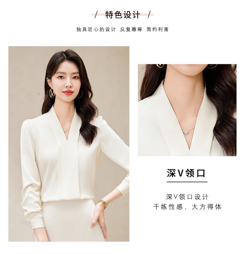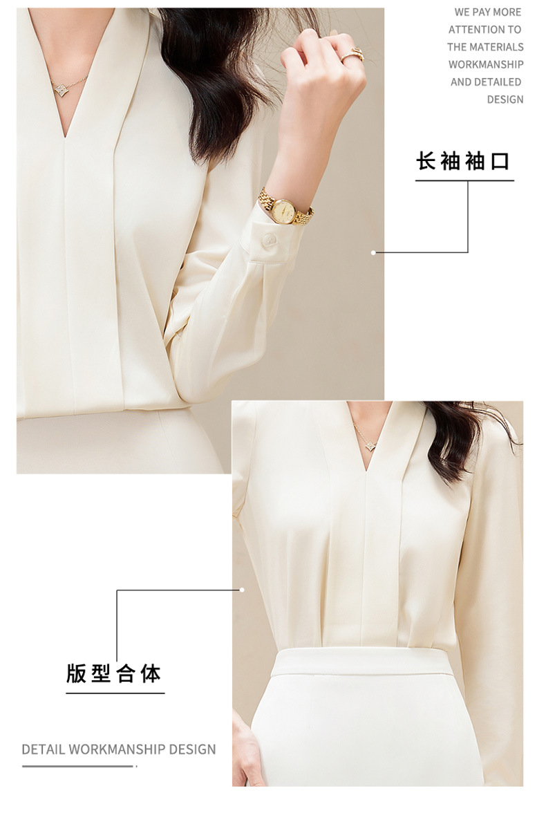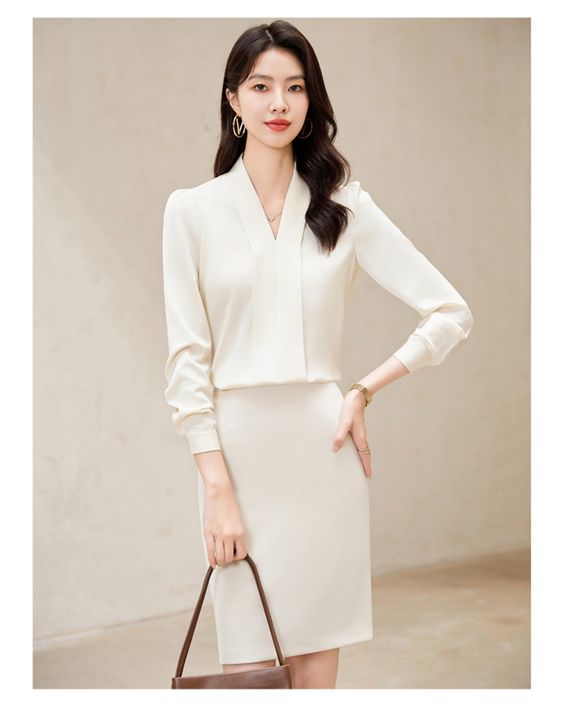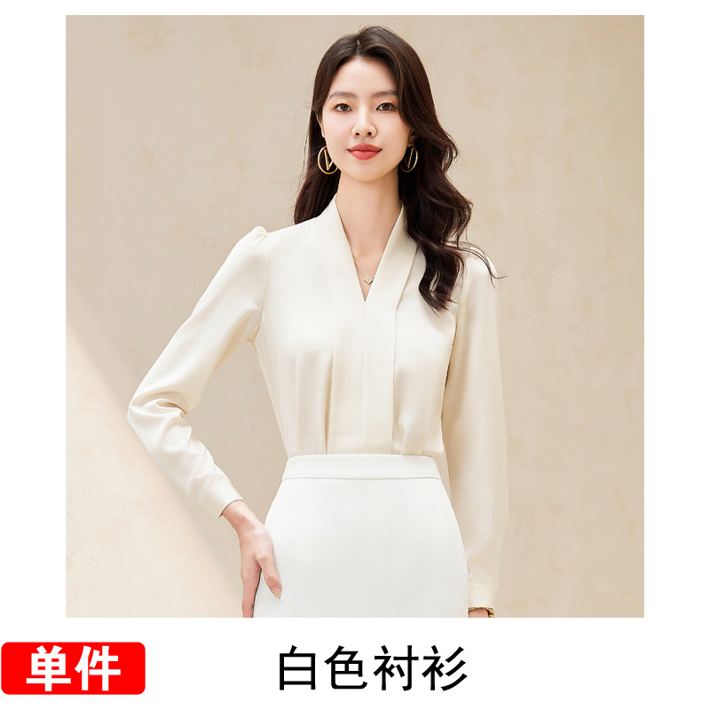 제조업체 신상 가을 여성용 비즈니스 셔츠 슬림핏 구김 방지 작업복 베이스 레이어 긴팔 쉬폰 브이넥 화이트 셔츠스토어 가기