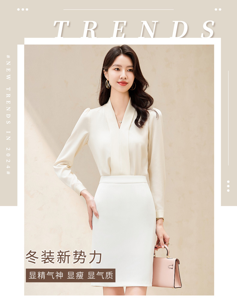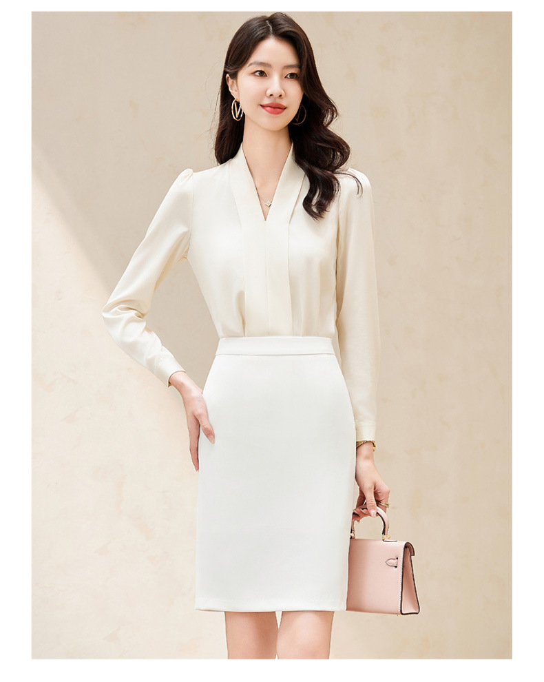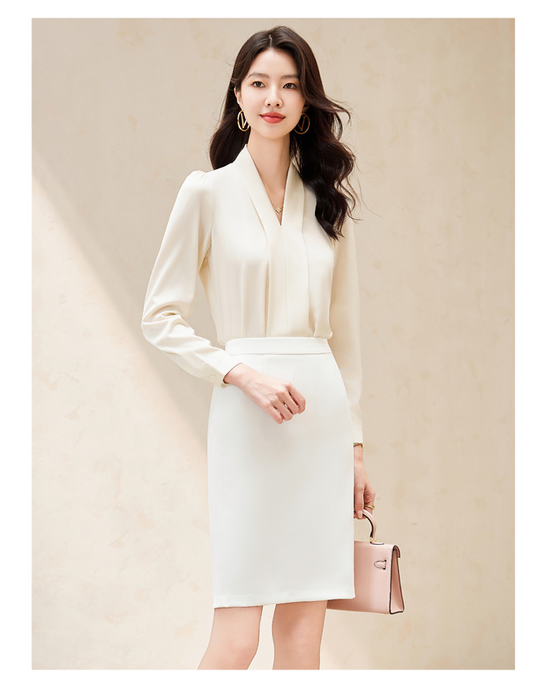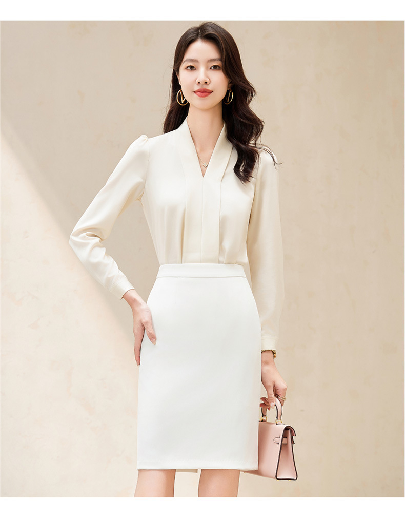 제조업체 신상 가을 여성용 비즈니스 셔츠 슬림핏 구김 방지 작업복 베이스 레이어 긴팔 쉬폰 브이넥 화이트 셔츠스토어 가기