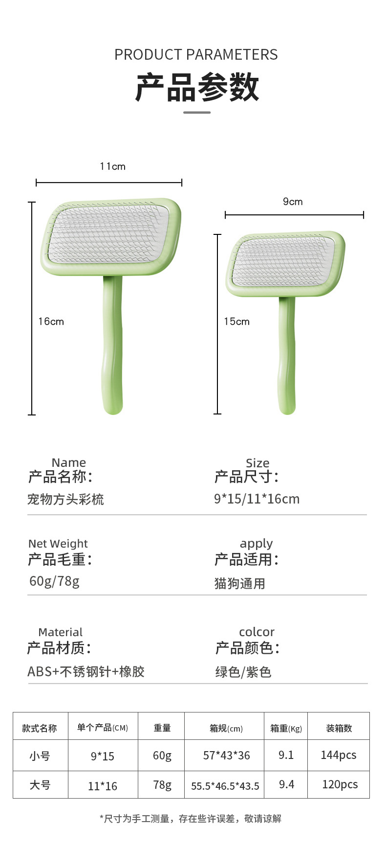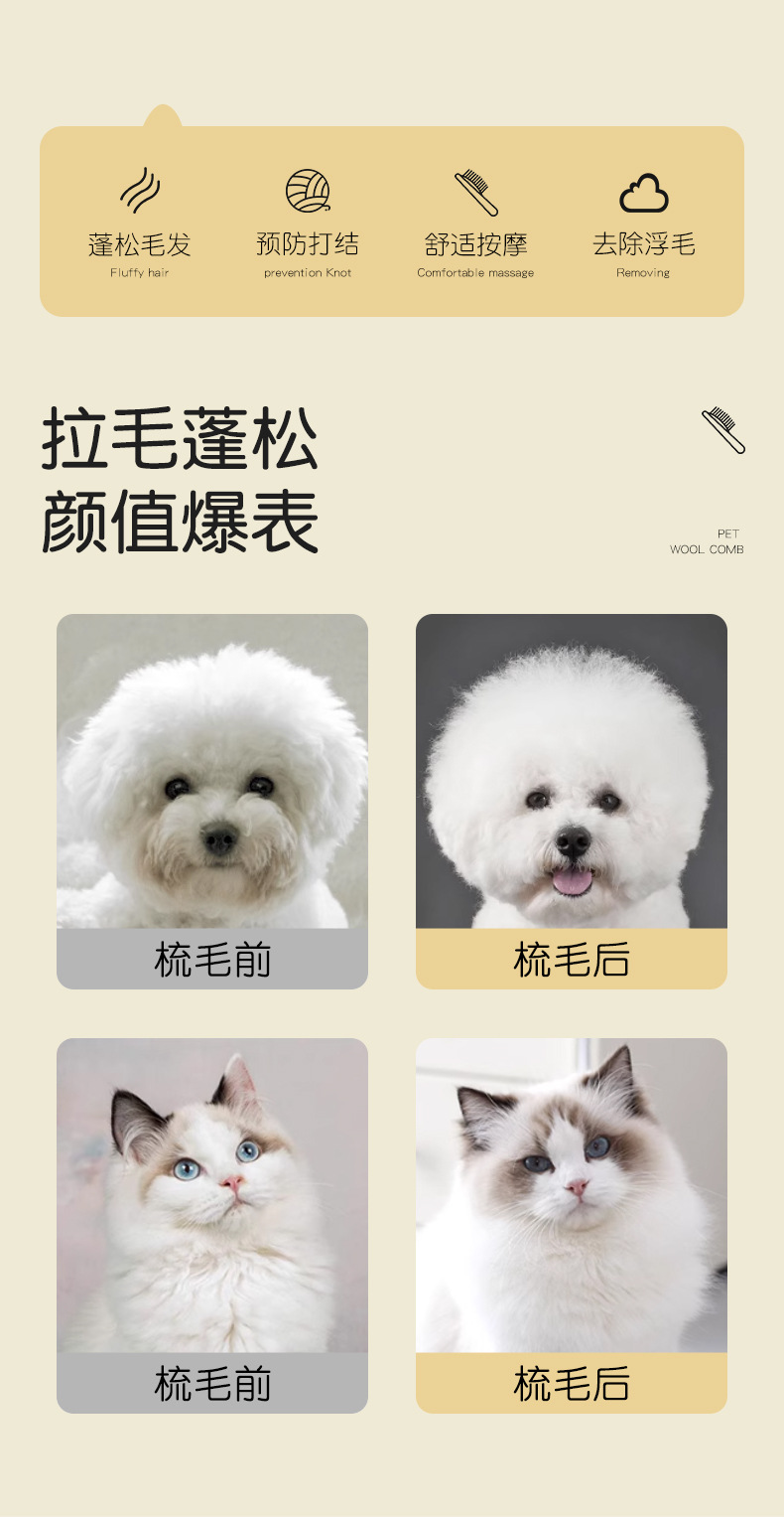 • 애완동물 사각 헤드 미용 빗