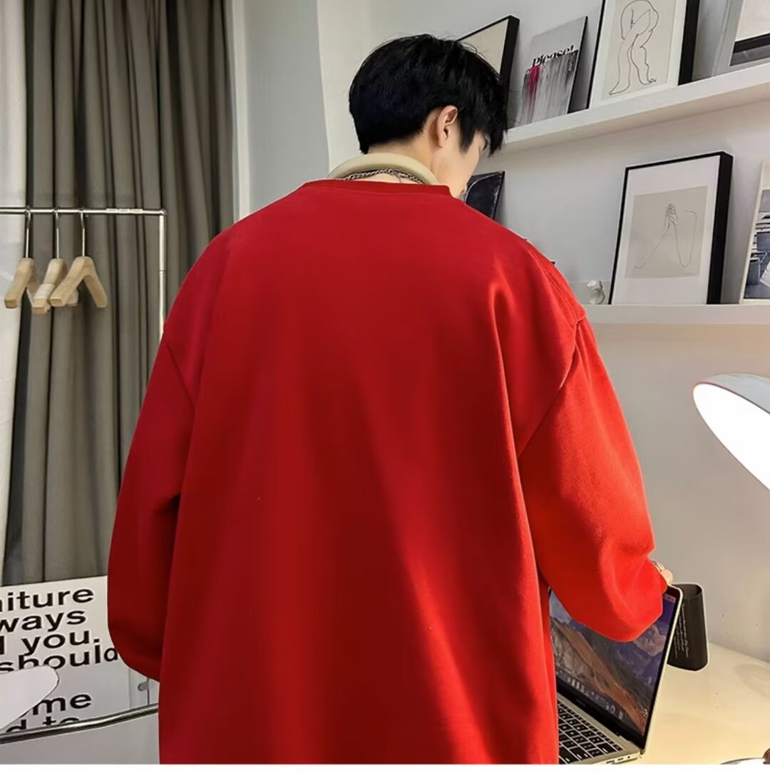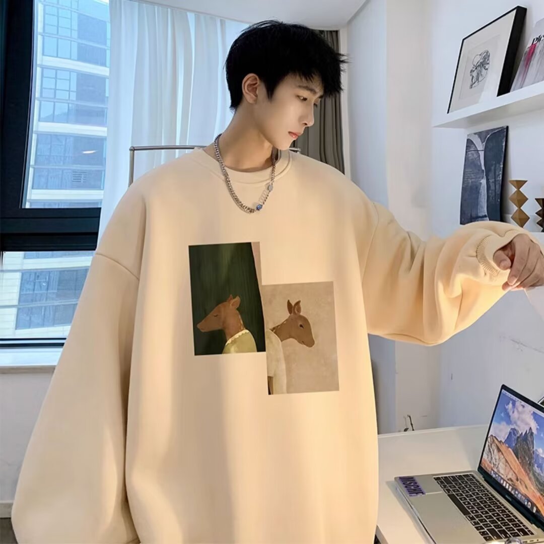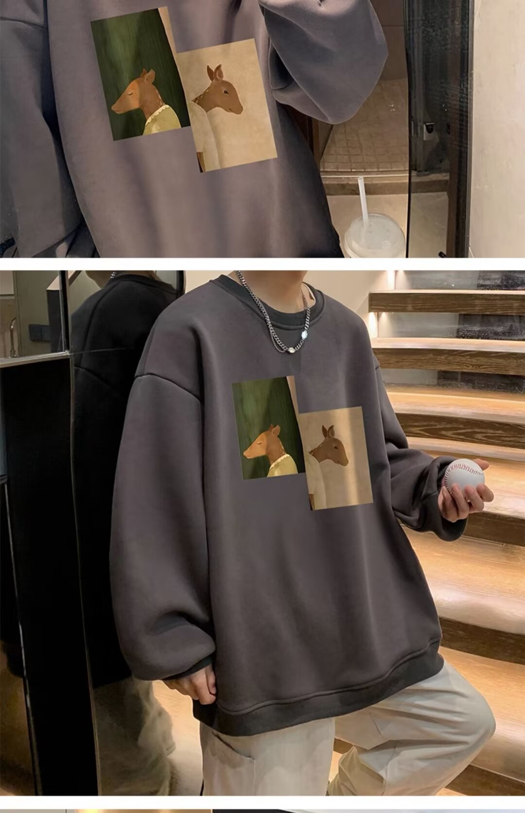 새로운 스타일 땀 남자의 가을과 겨울 미국 스타일 트렌디 브랜드 인쇄 된 동물 외부 착용 오버 사이즈 느슨한 백 크루 넥 탑