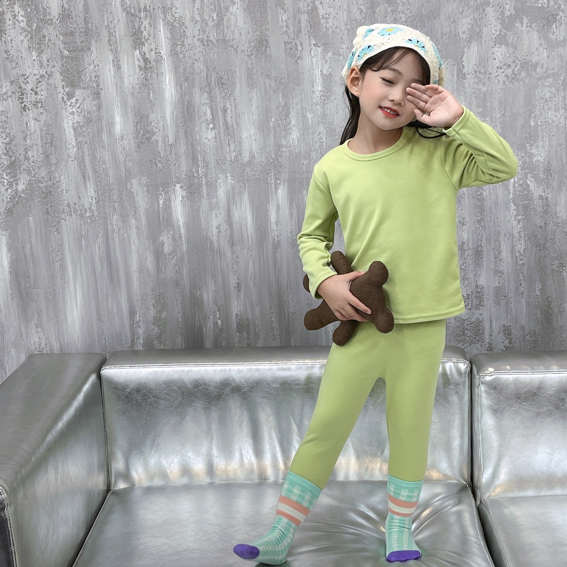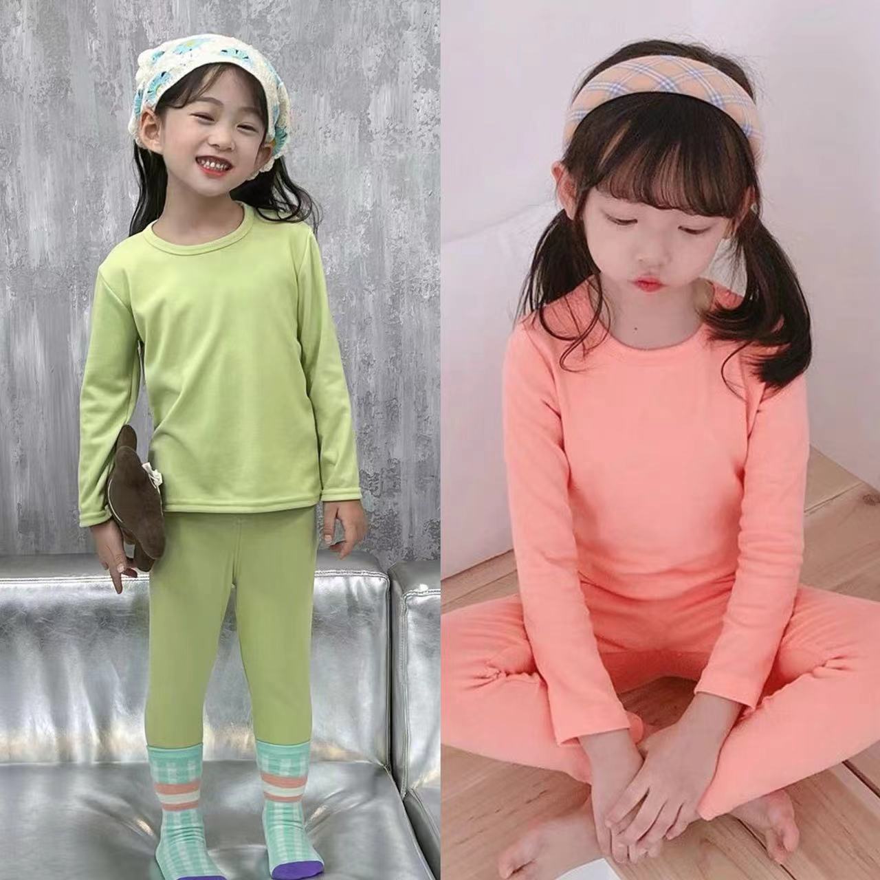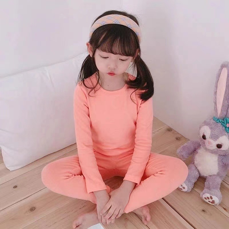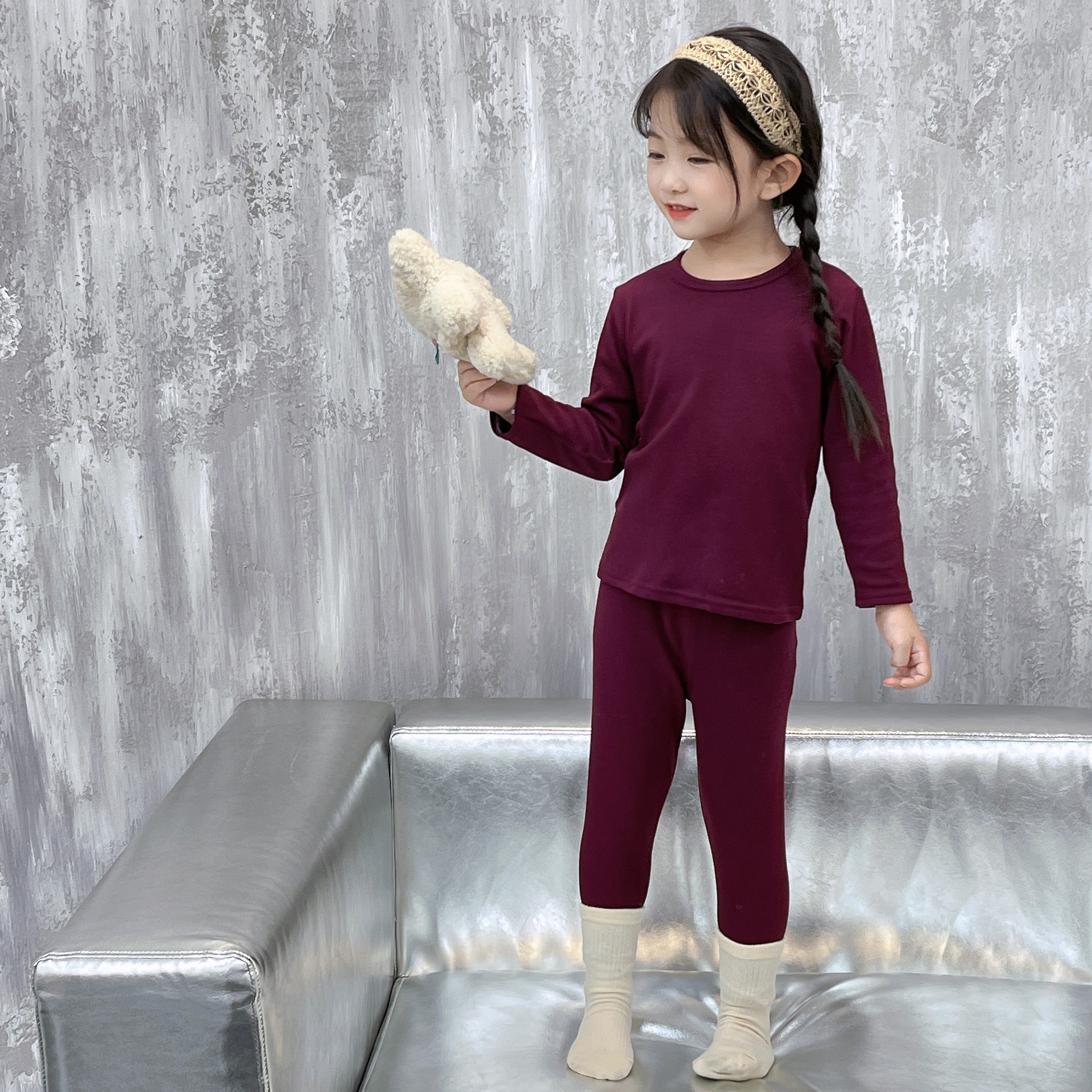 아동용 잠옷 세트 가을 겨울 보온 속옷 A급 가정용 단색 여아 가을 옷과 긴 바지 따뜻한 기본 세트스토어 가기