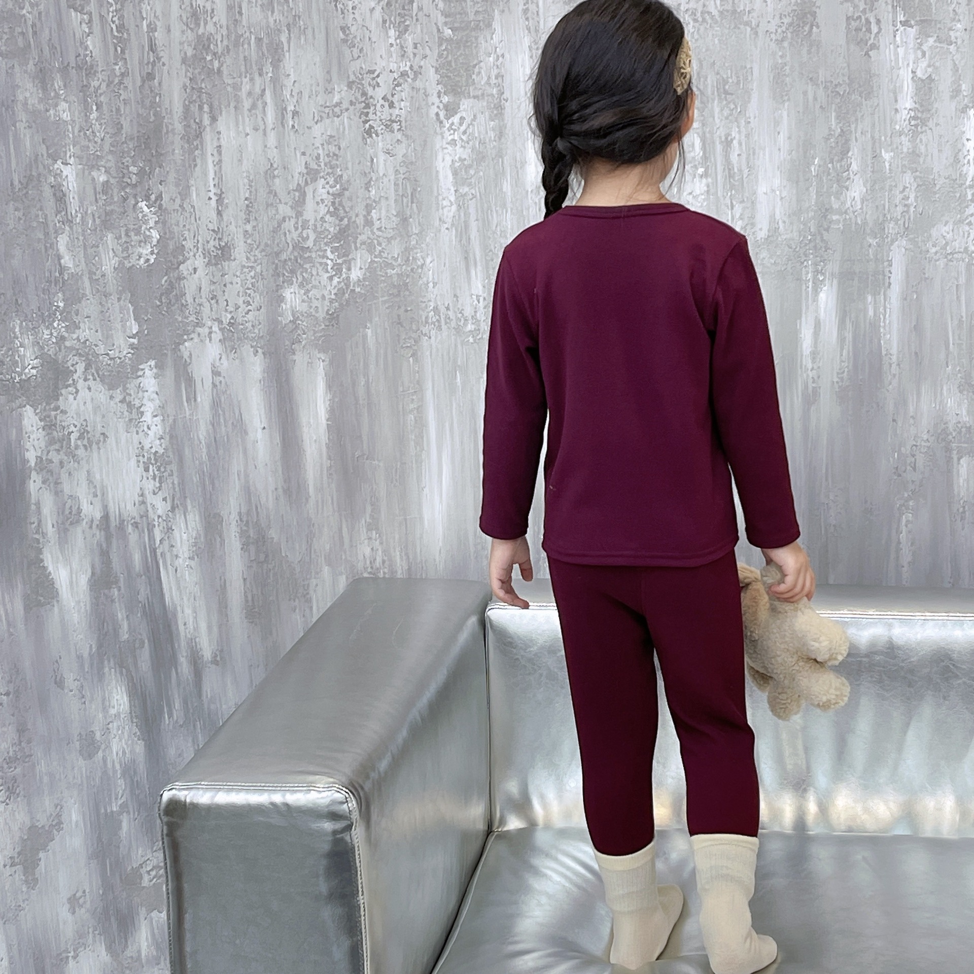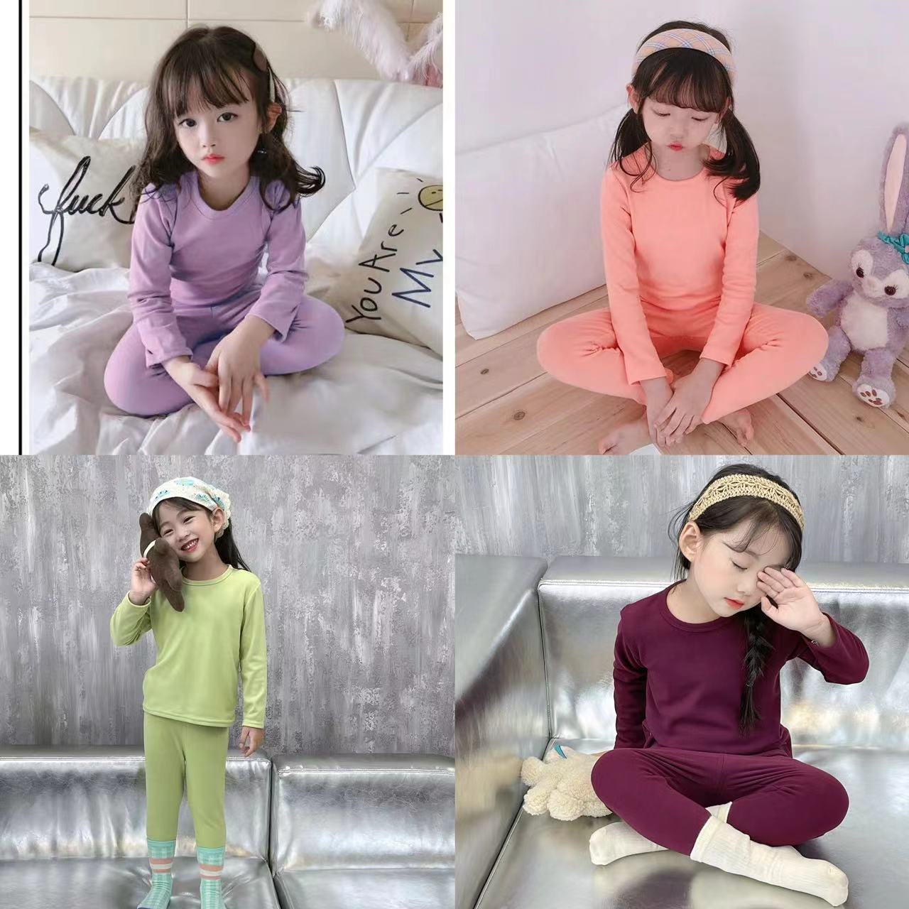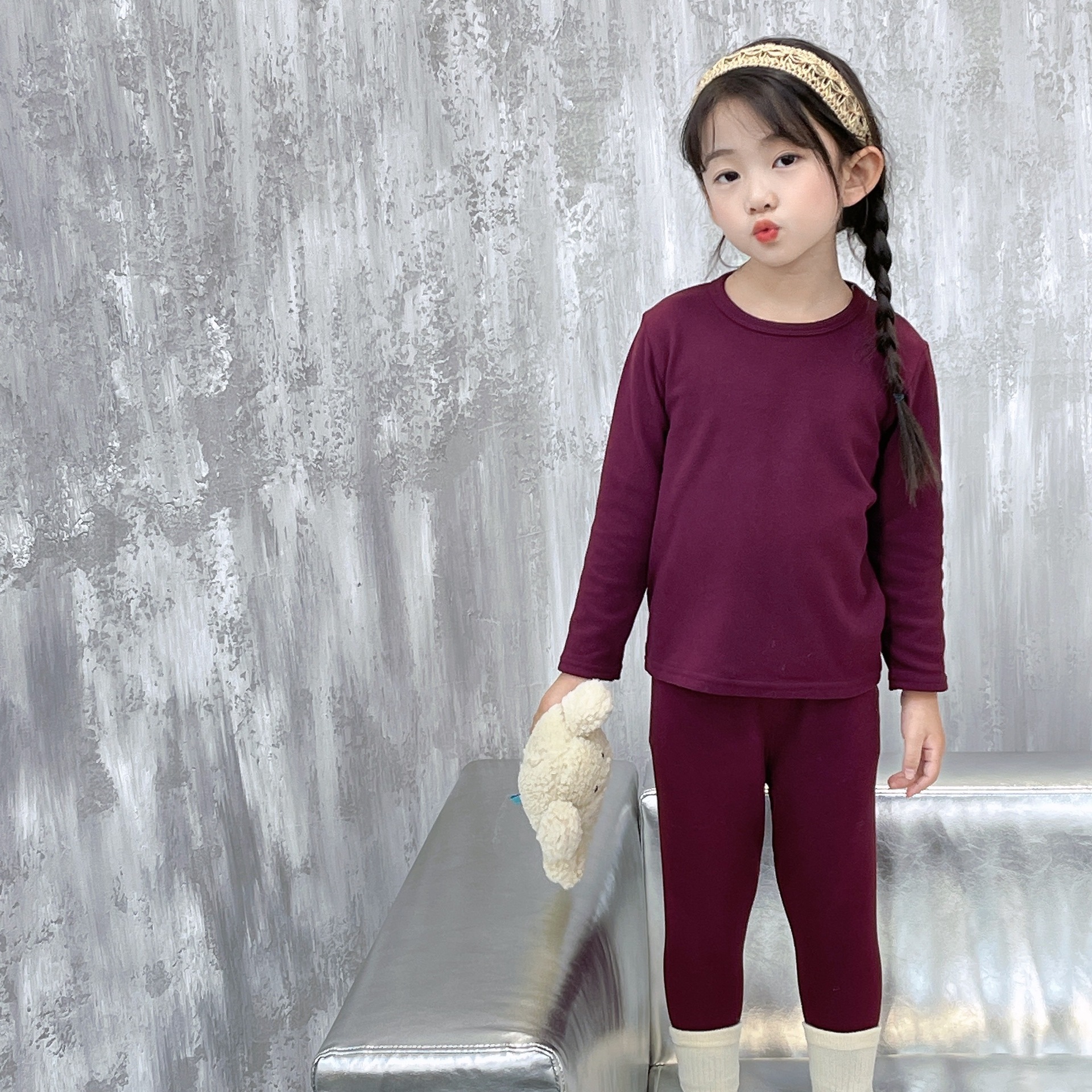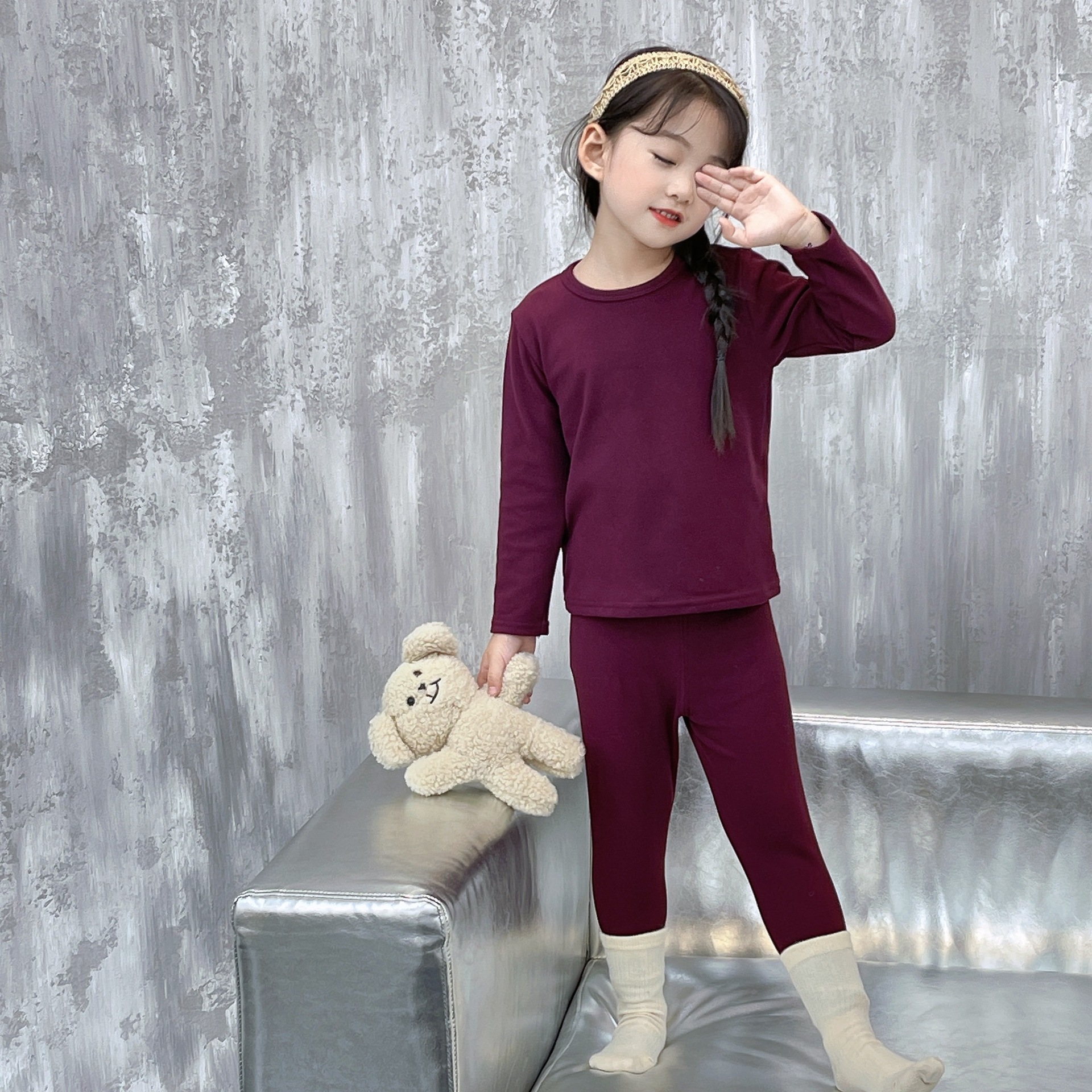 아동용 잠옷 세트 가을 겨울 보온 속옷 A급 가정용 단색 여아 가을 옷과 긴 바지 따뜻한 기본 세트스토어 가기
