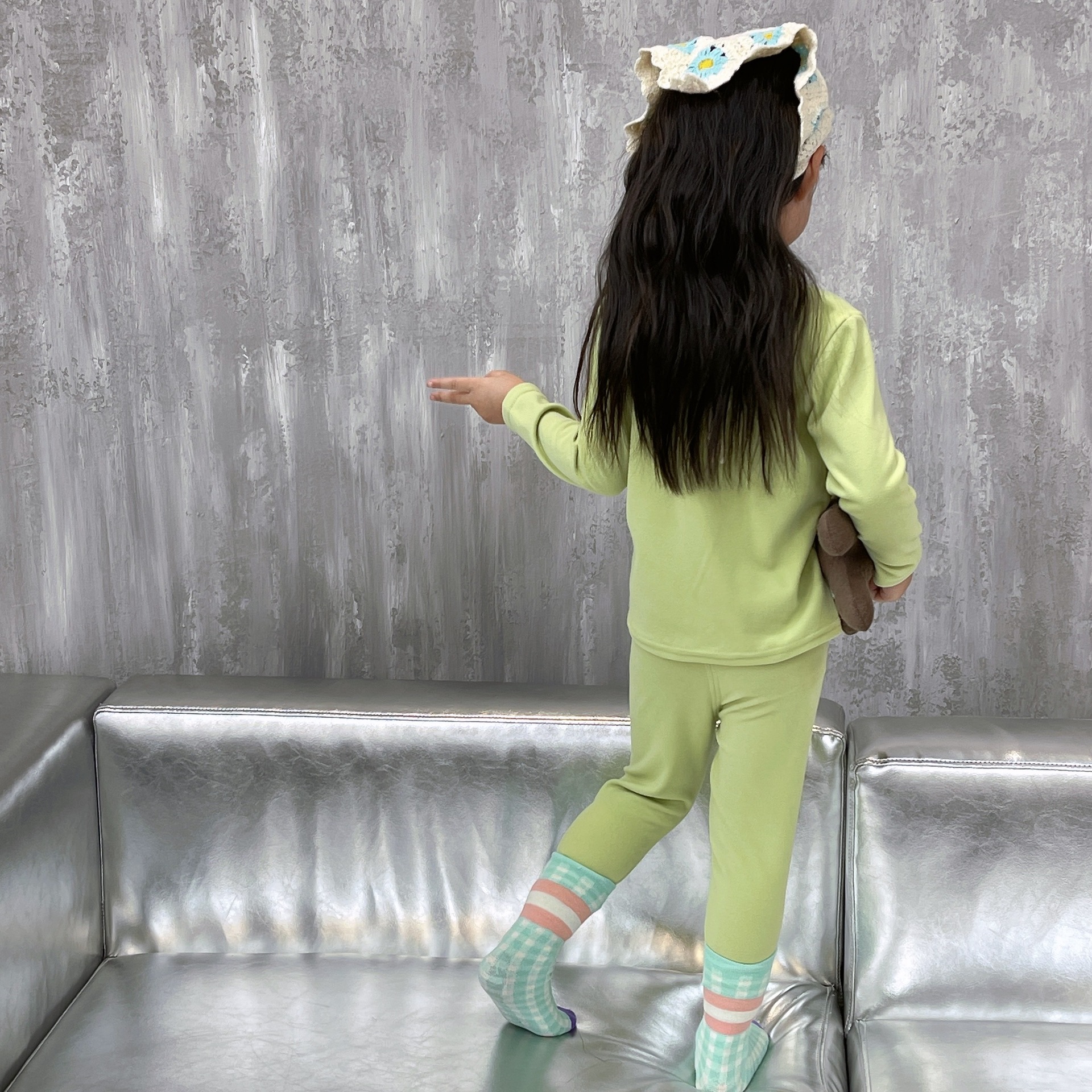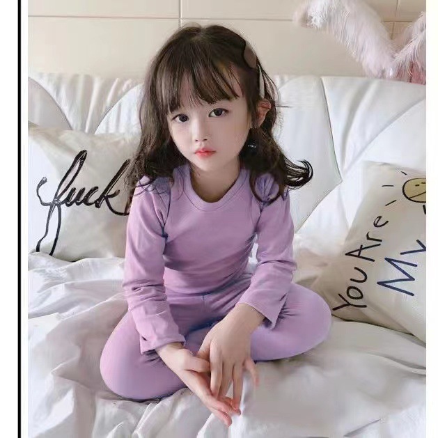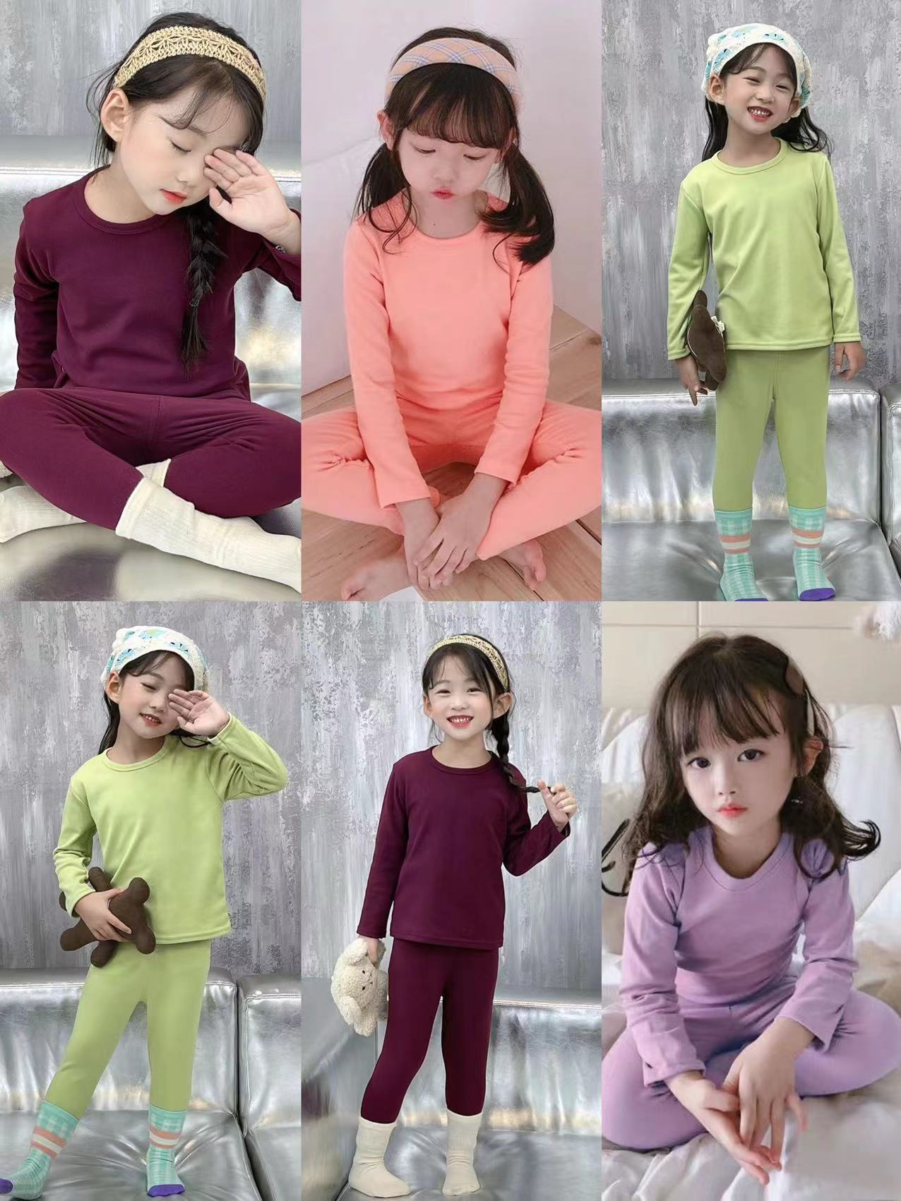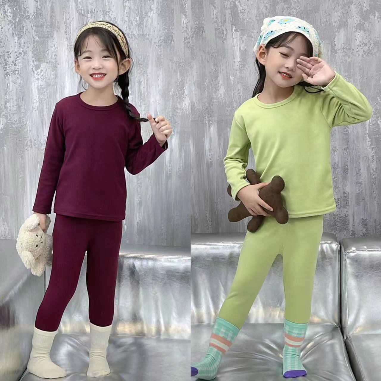 아동용 잠옷 세트 가을 겨울 보온 속옷 A급 가정용 단색 여아 가을 옷과 긴 바지 따뜻한 기본 세트스토어 가기