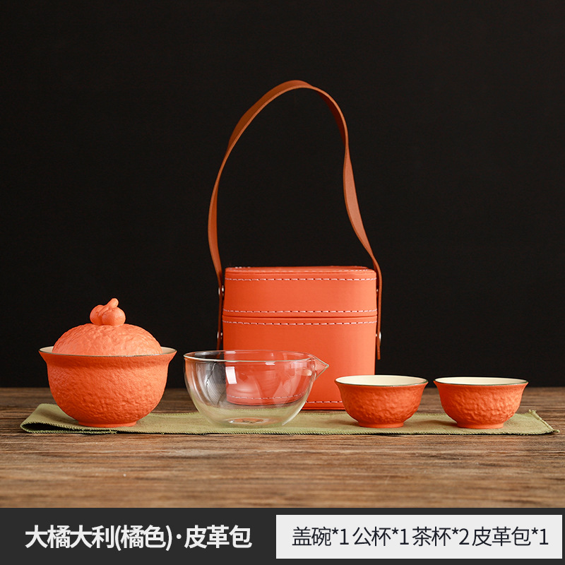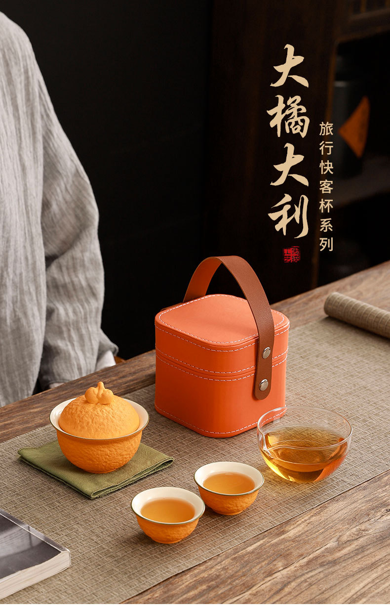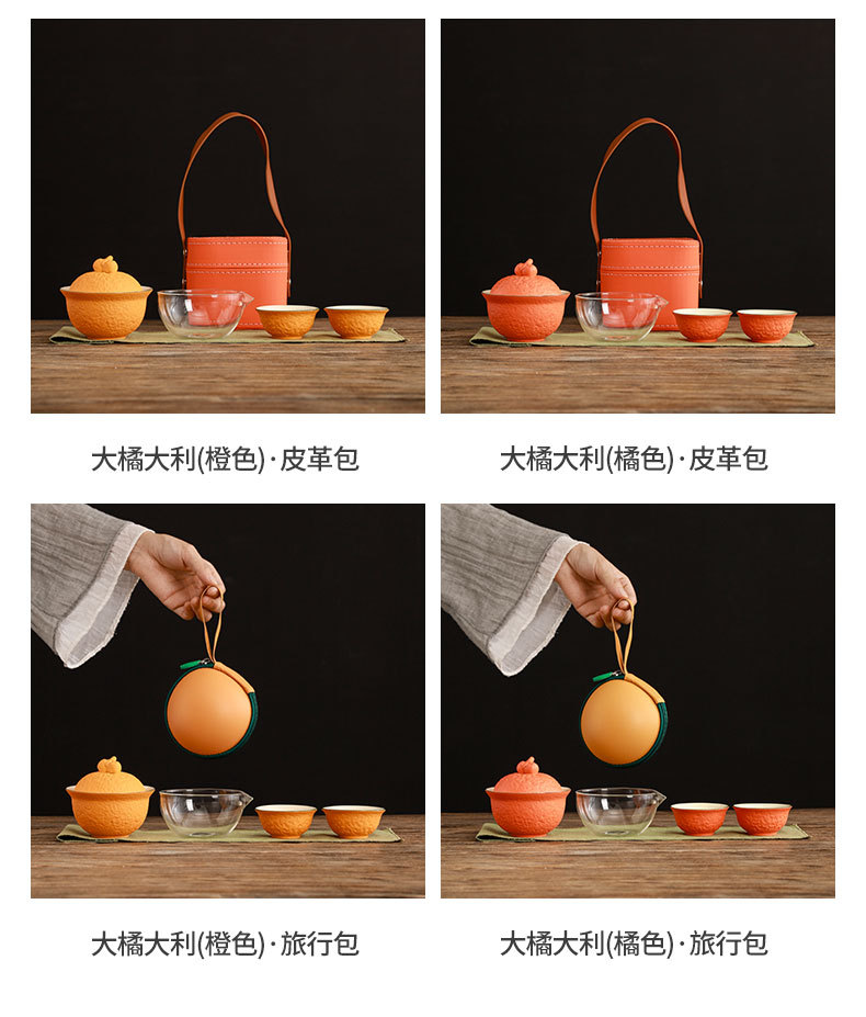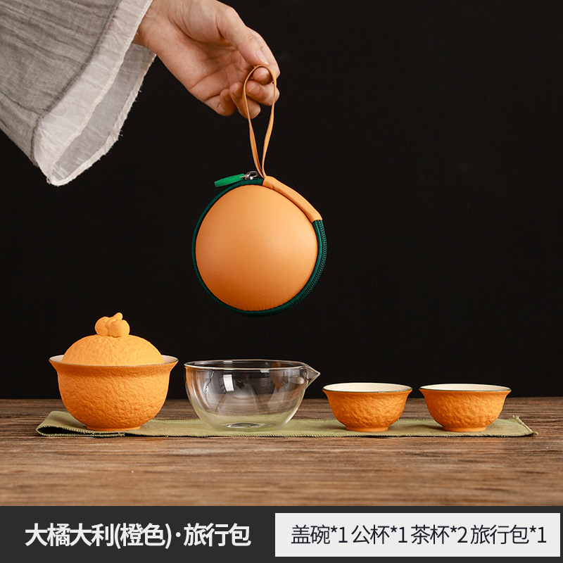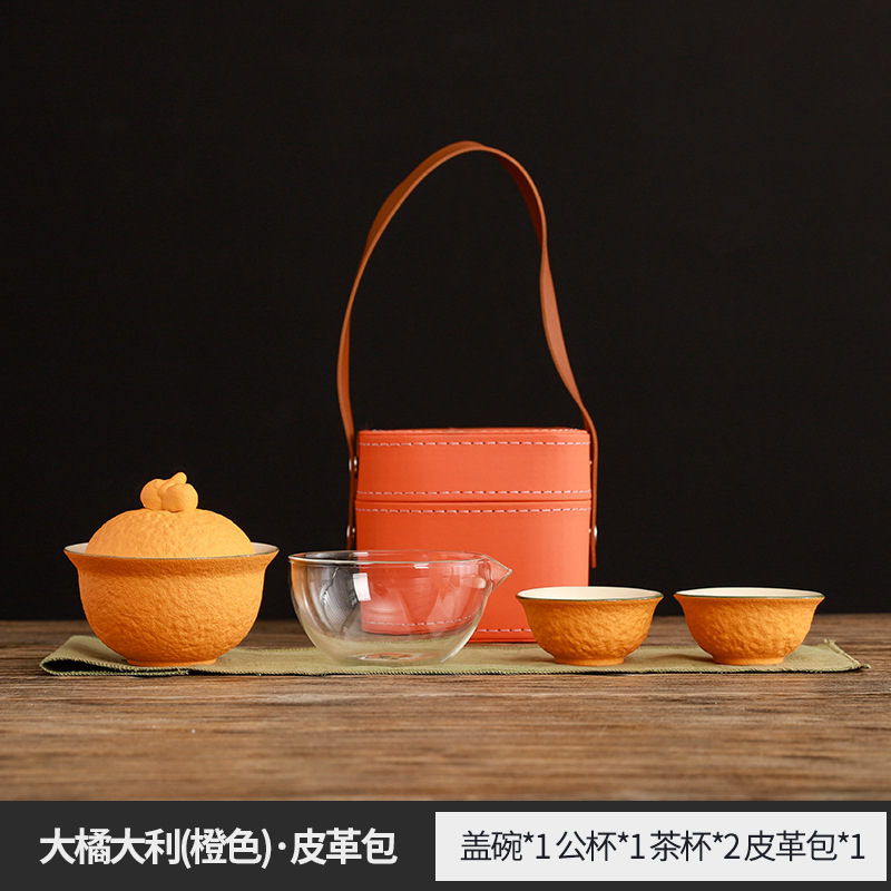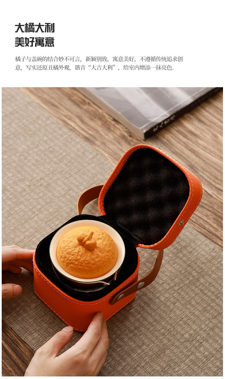• 빅 오렌지 이탈리안 여행용 차 세트 백자 오렌지 휴대용 가방