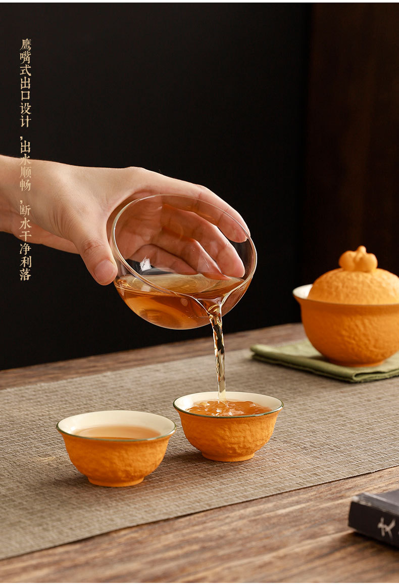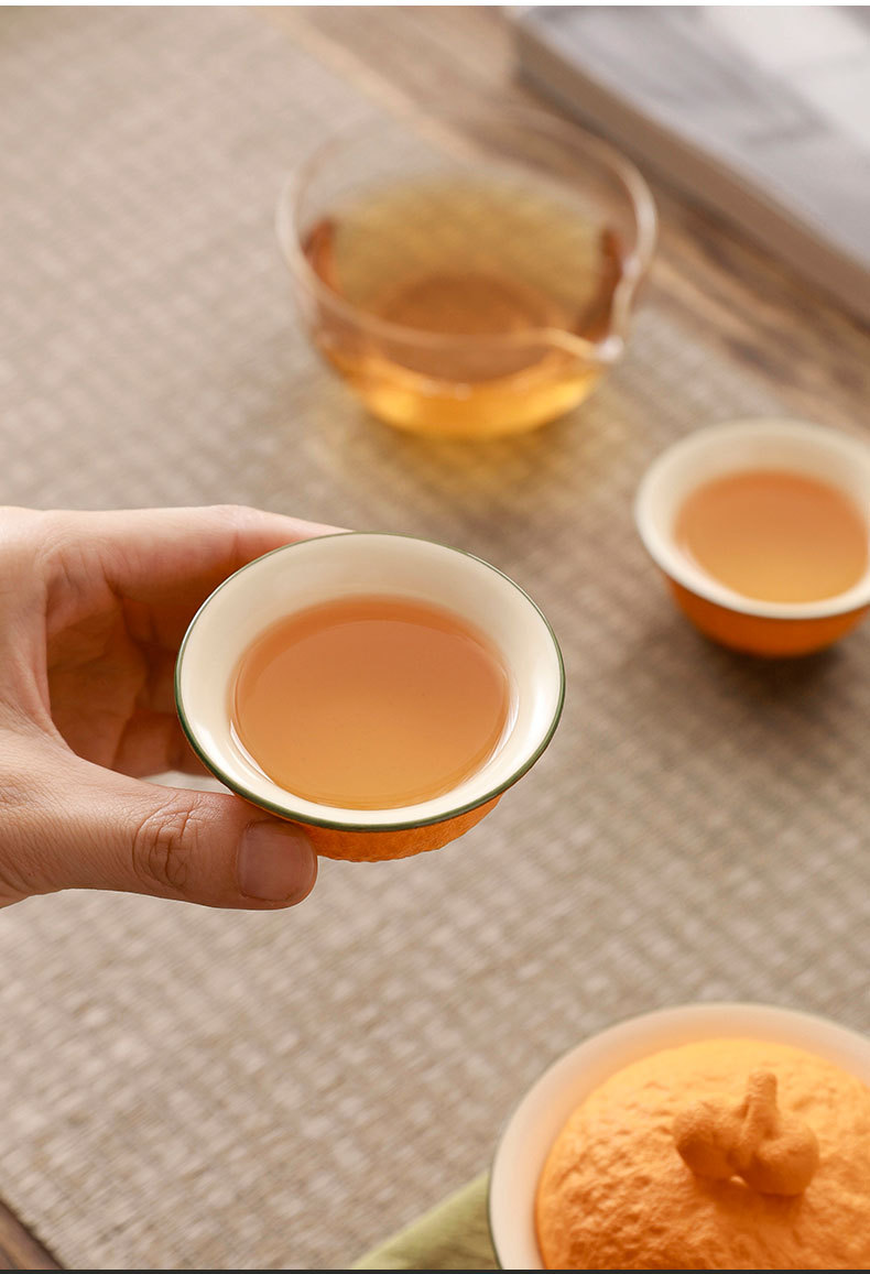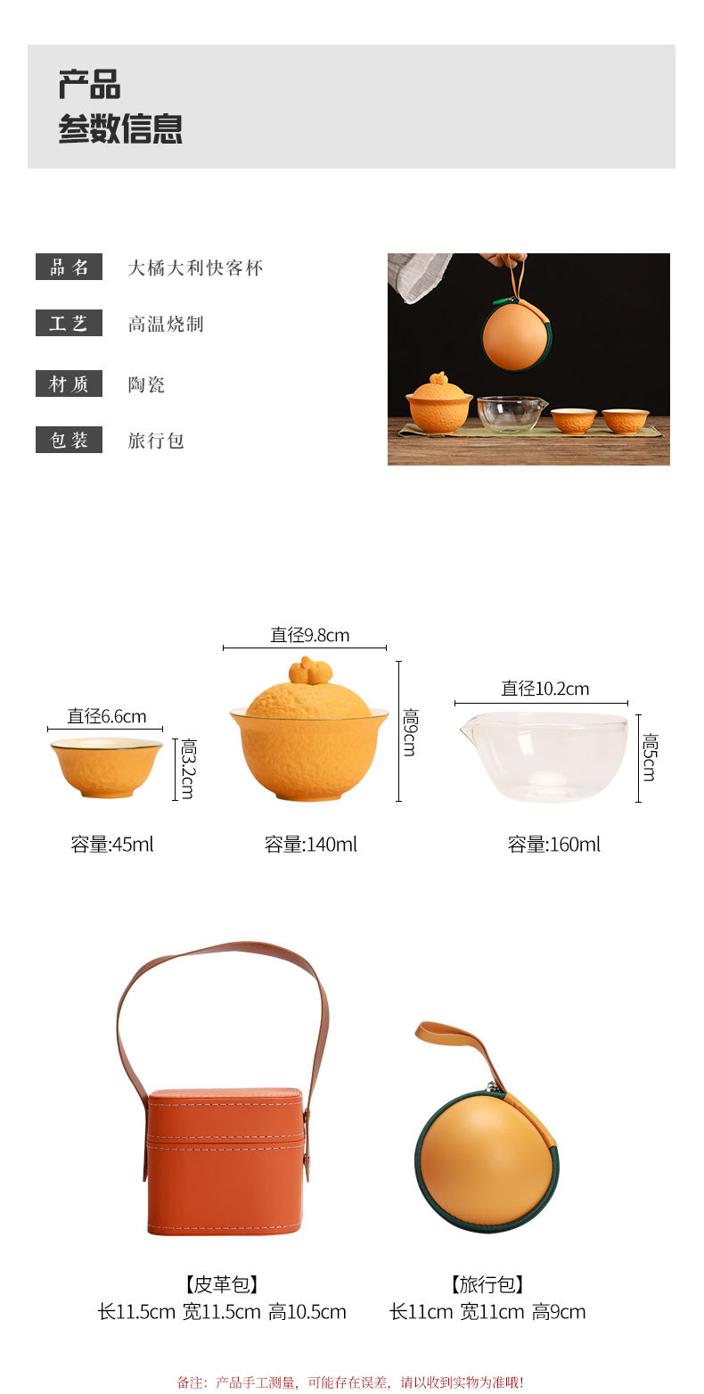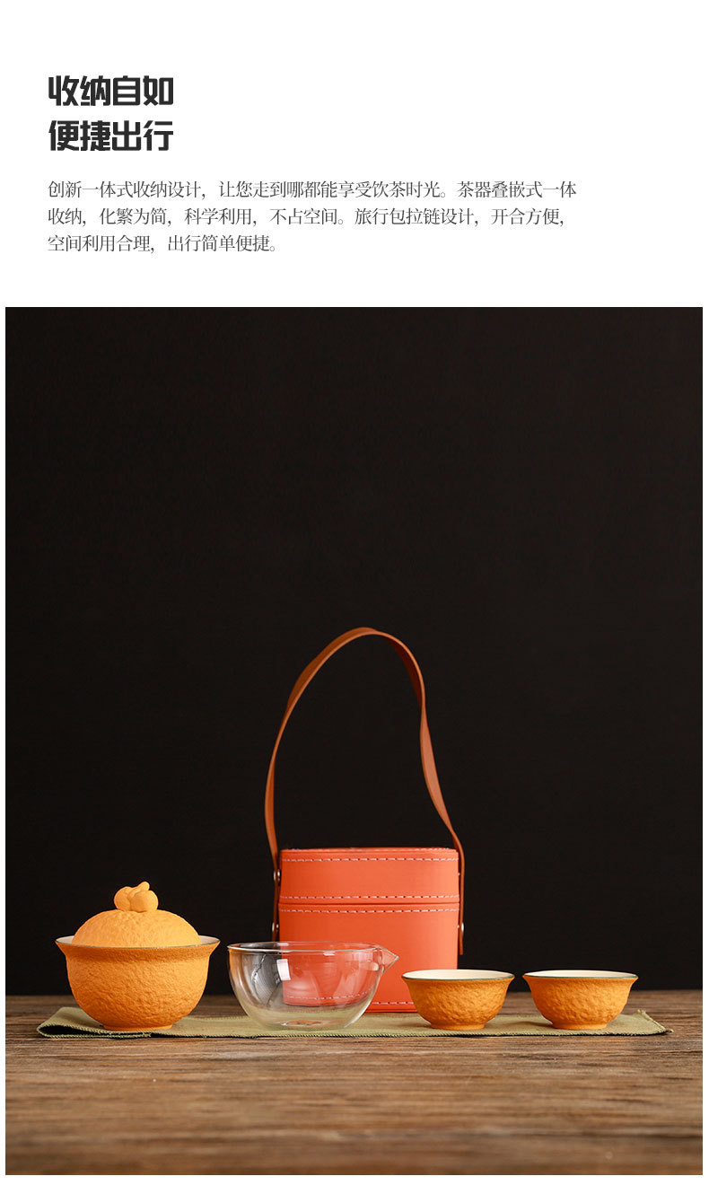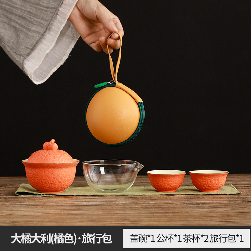 • 빅 오렌지 이탈리안 여행용 차 세트 백자 오렌지 휴대용 가방