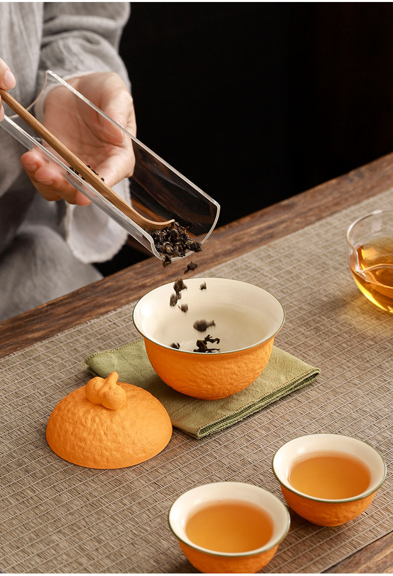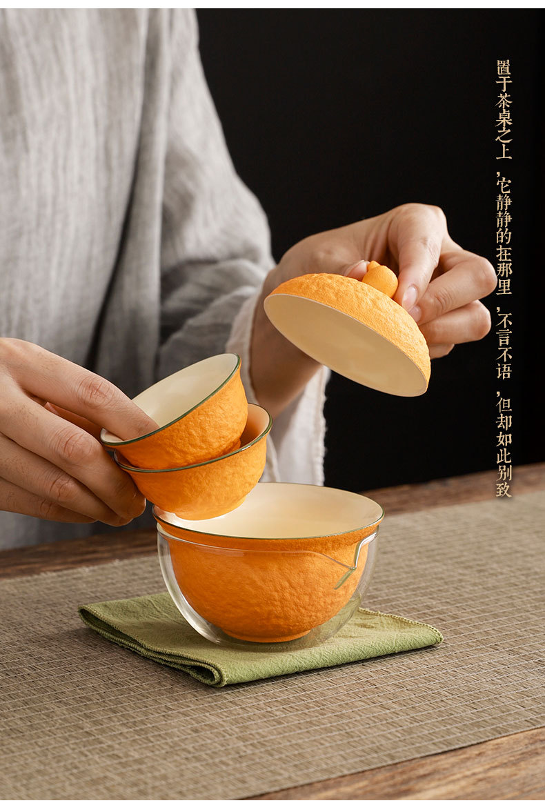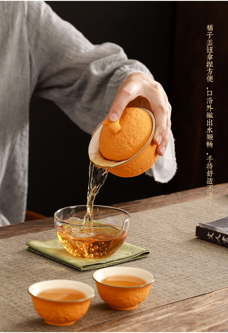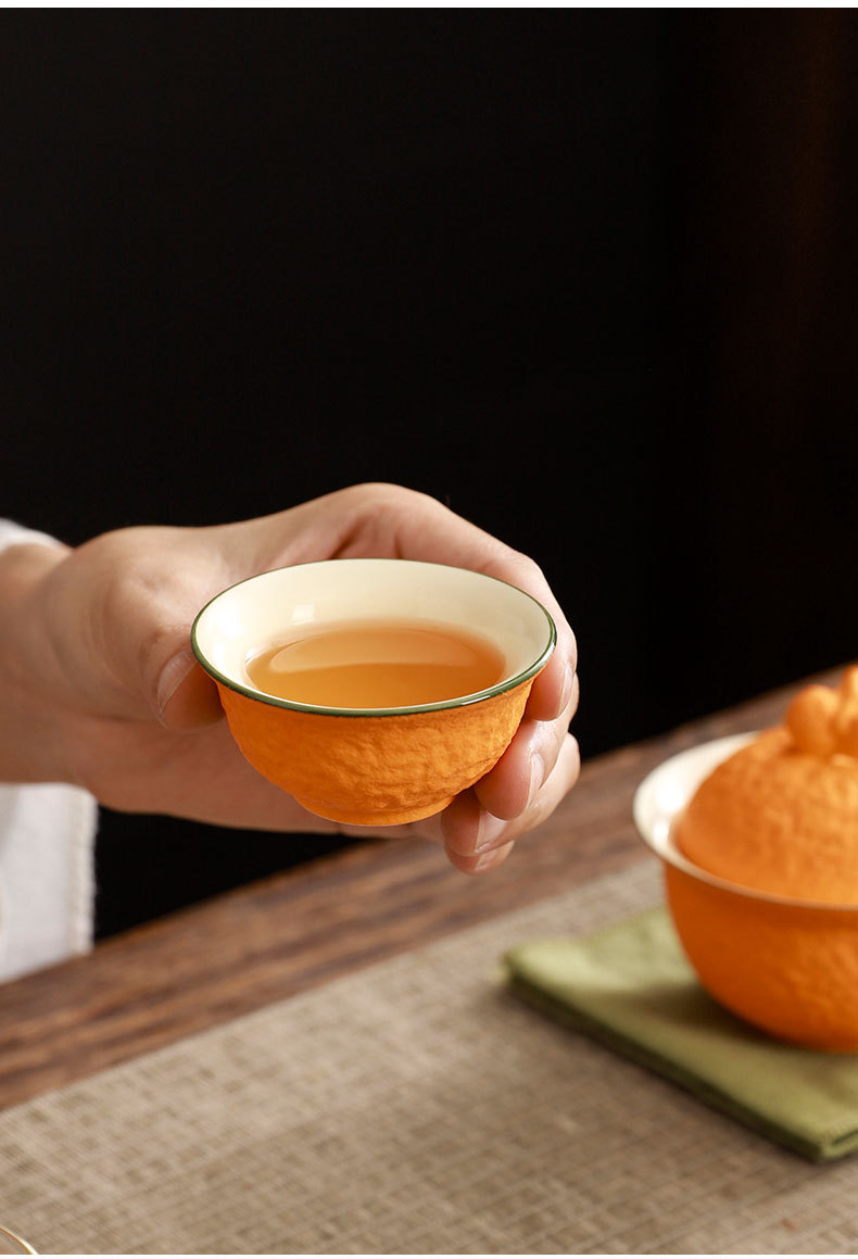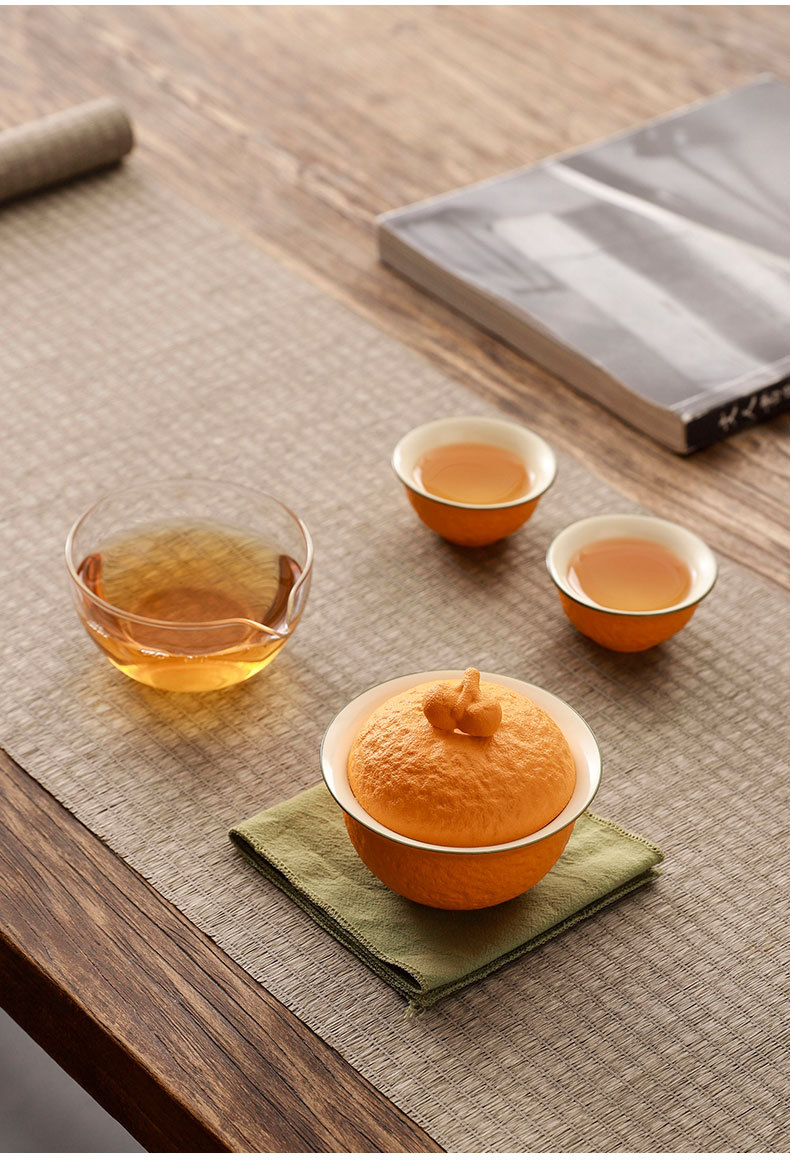 • 빅 오렌지 이탈리안 여행용 차 세트 백자 오렌지 휴대용 가방
