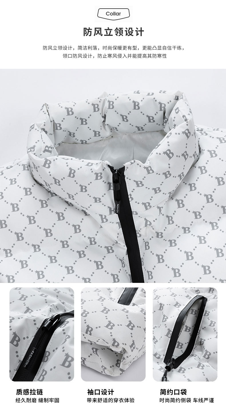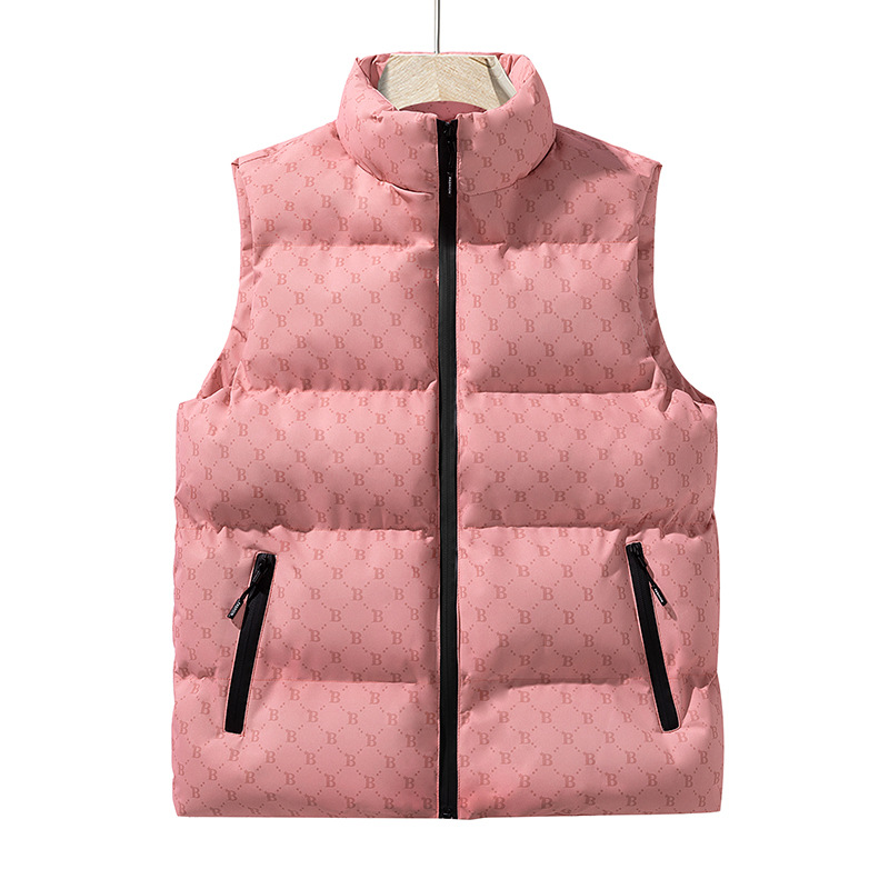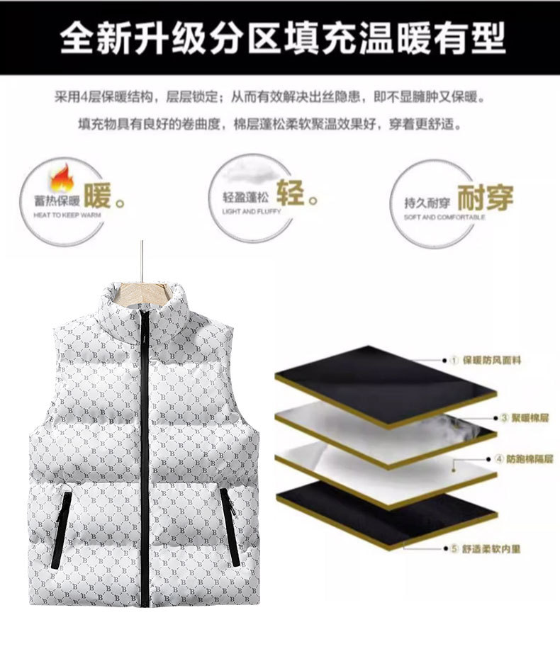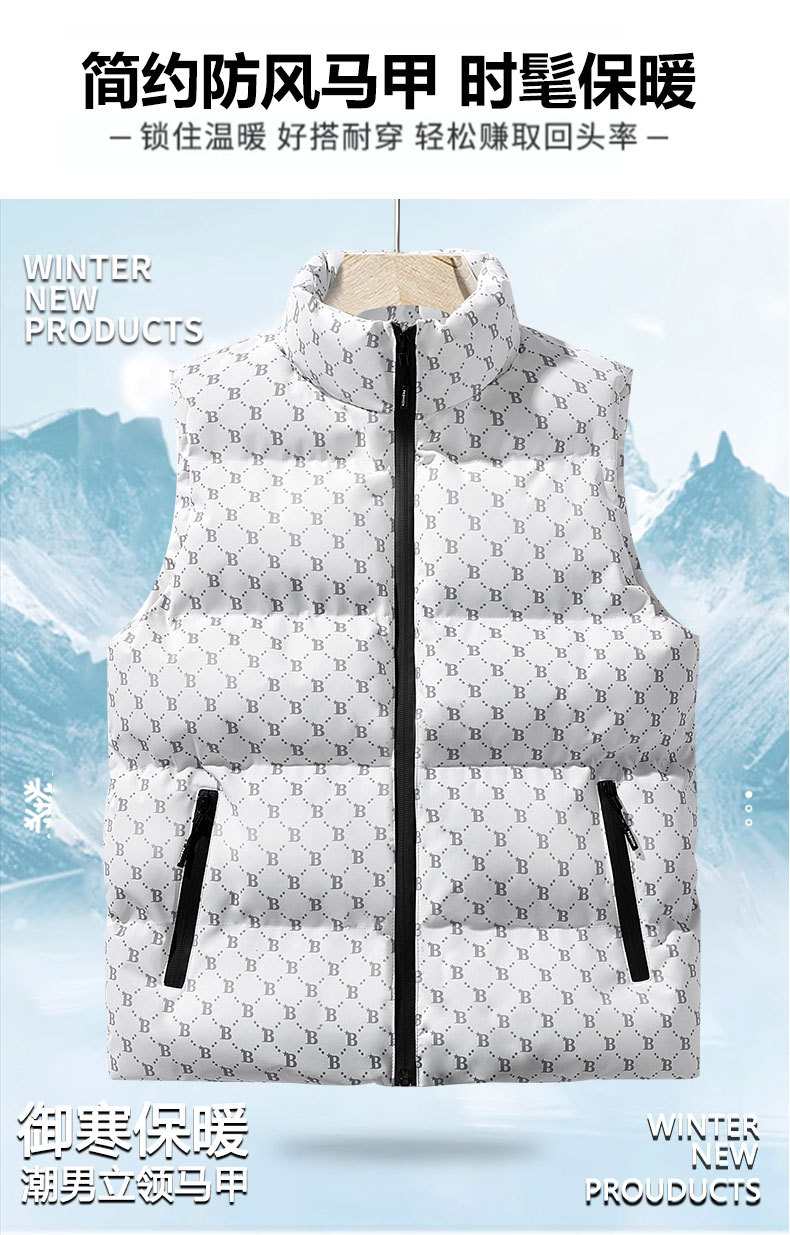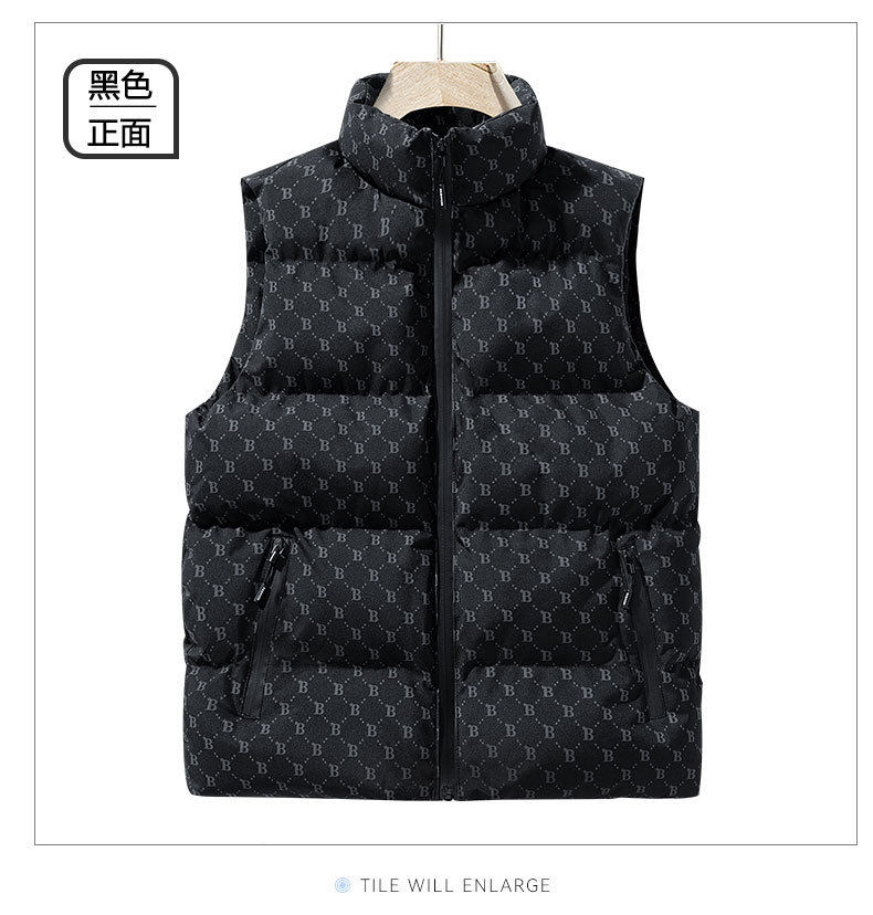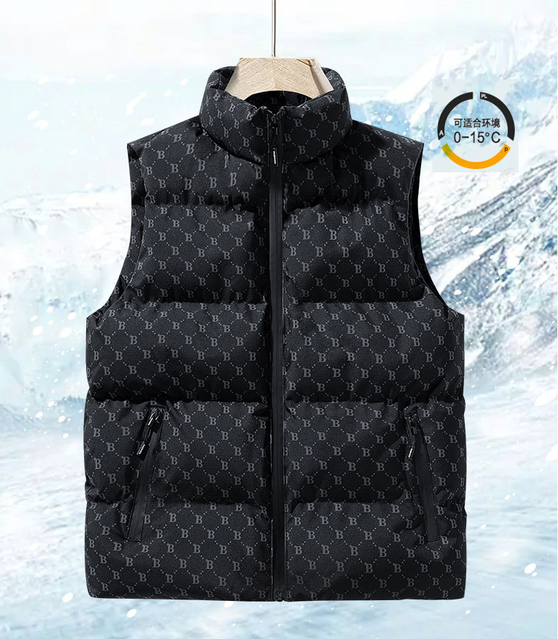 새로운 B-워드 코튼 패딩 조끼 남성용 빵면 패딩 민소매 조끼 두꺼운 따뜻한 조끼 지퍼 포켓 스탠드스토어 가기