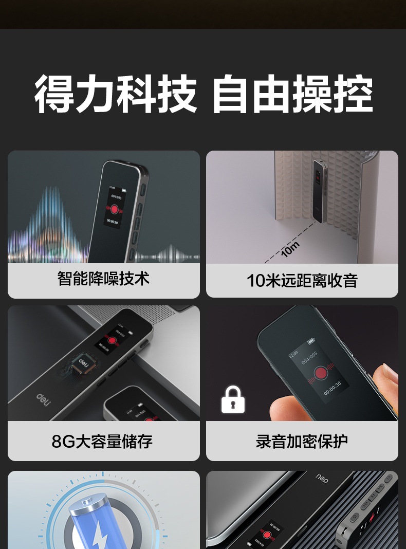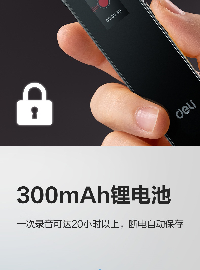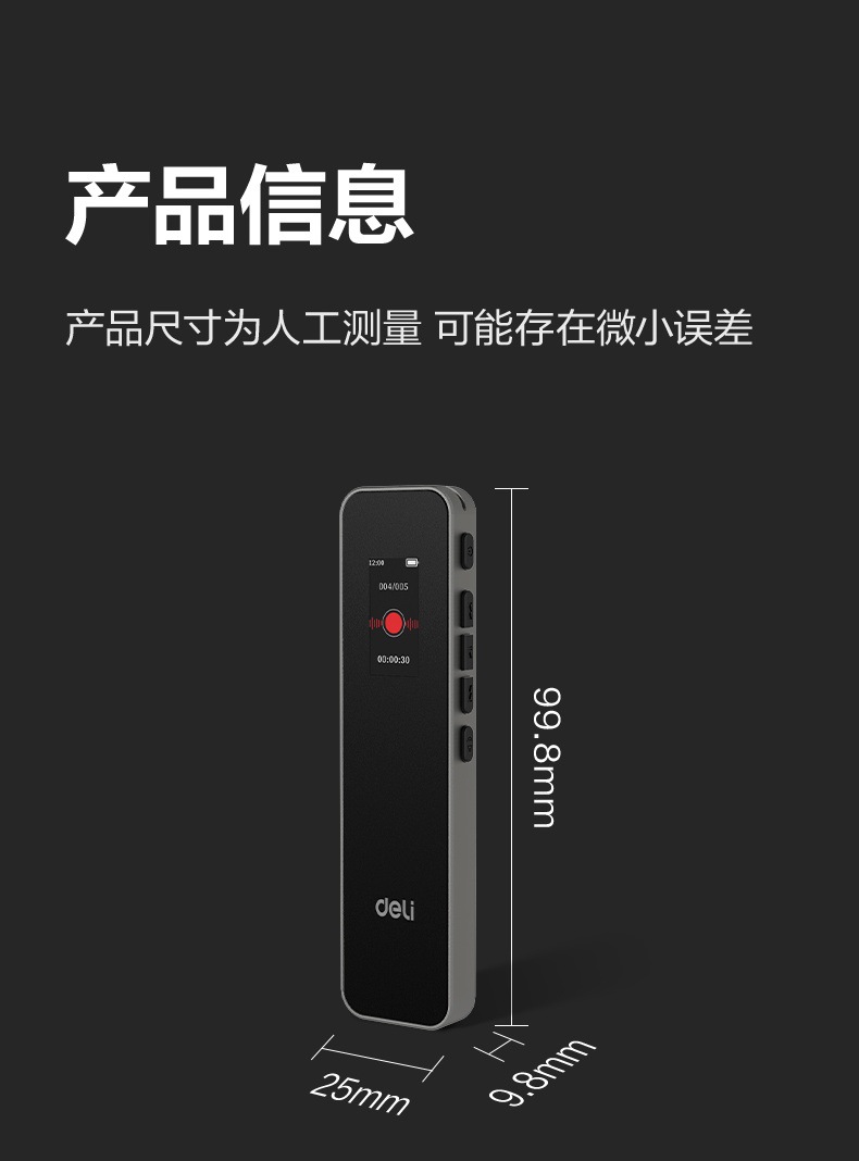 델리 MP301 전문 녹음 펜 지능형 소음 감소 학생 휴대용 사무실 회의 수업