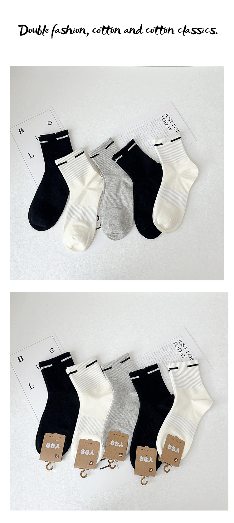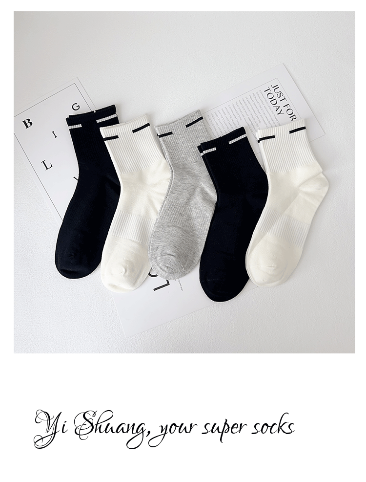Yi Shuang Pair 주니어 양말 가을과 겨울 새로운 한국 스타일 스트라이프 미드 양말 빗 코튼 트렌디 브랜드 스포츠 양말 중학생 면 양말