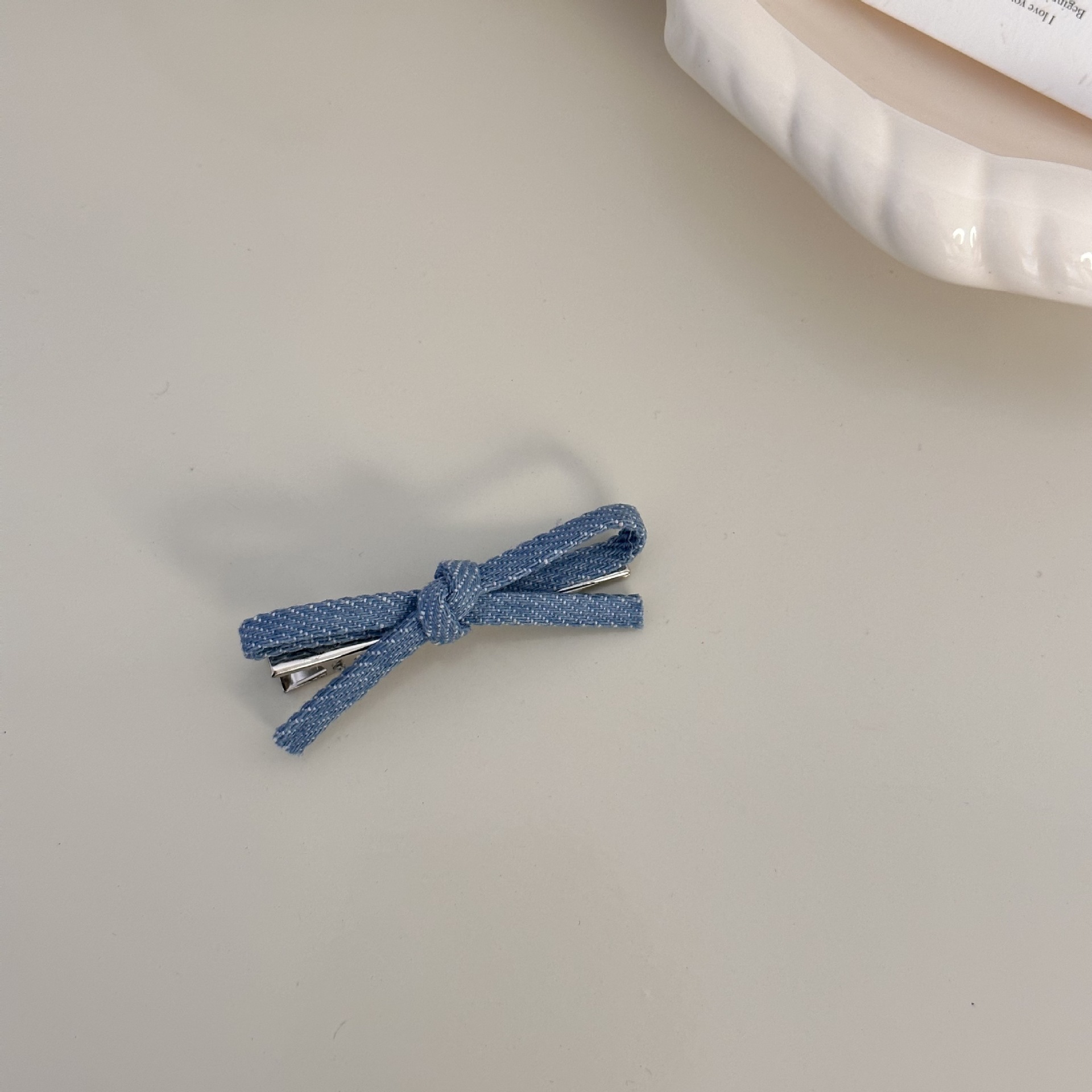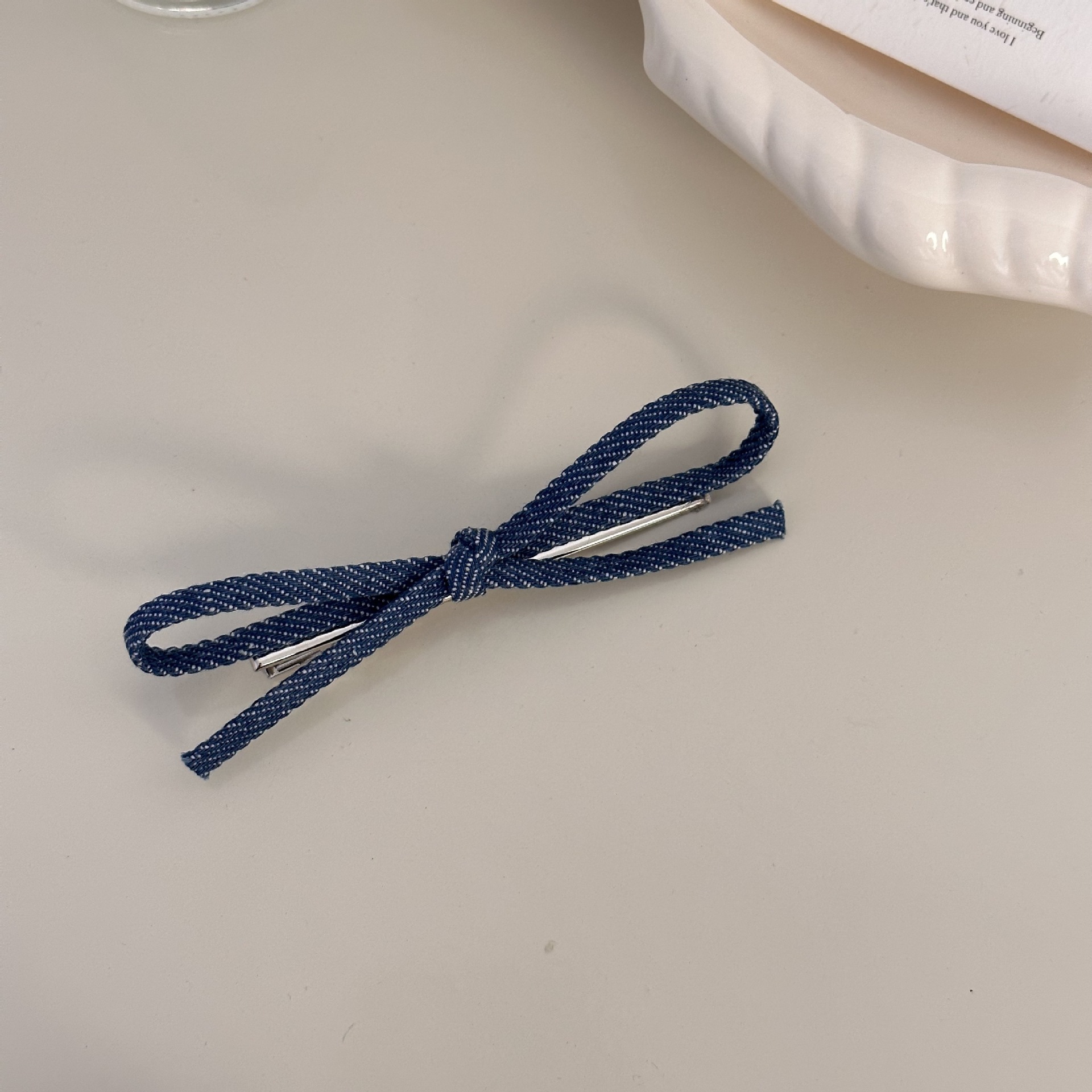 여성용 리본 데님 머리핀 2024 새로운 고급 원라인 클립 앞머리 머리카락 사이드 클립 덕빌 클립 헤어 액세서리