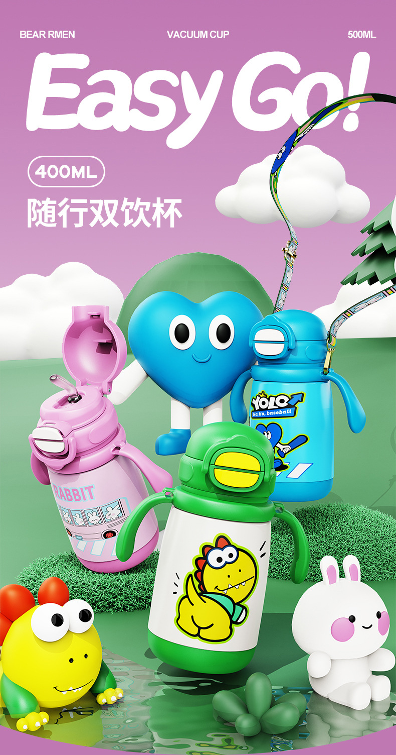 新款上市 一盖双饮学饮杯 带刻度 送背带