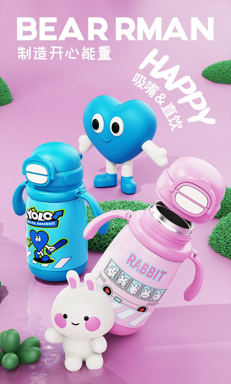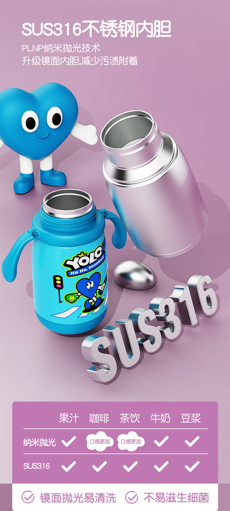 밀짚 스케일 316 스테인레스 스틸 절연 여성 학생 주전자 마시는 컵 휴대용 학습 더블 사용 어린이 보온병 컵