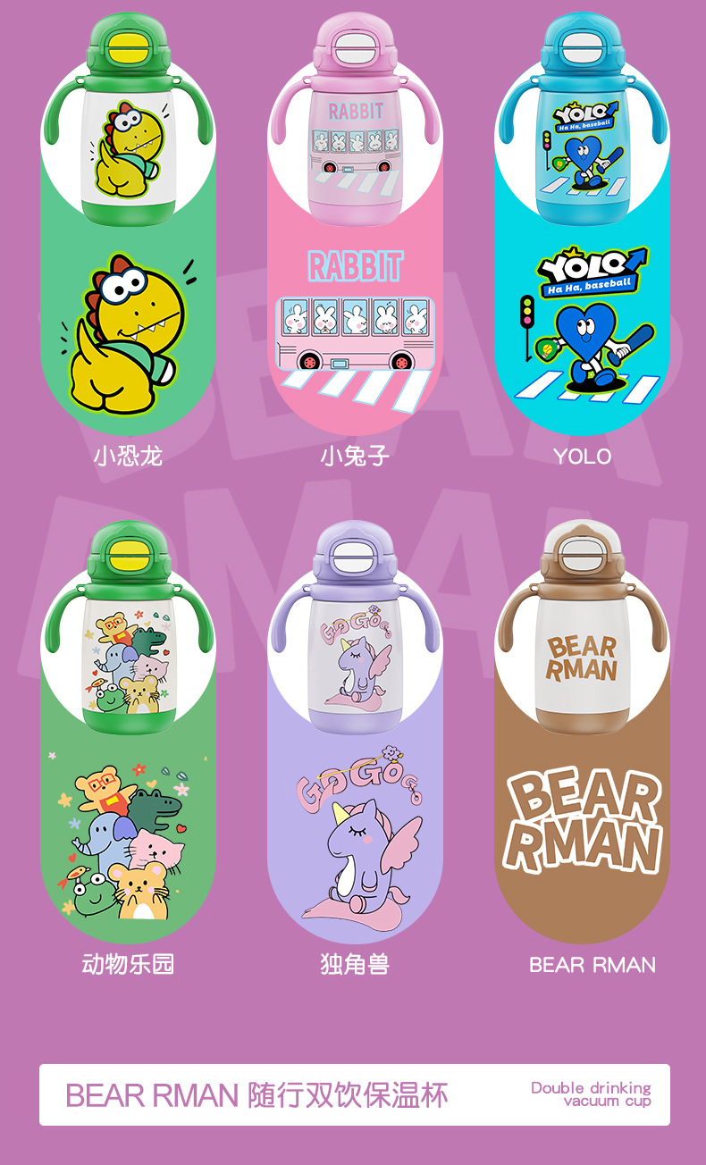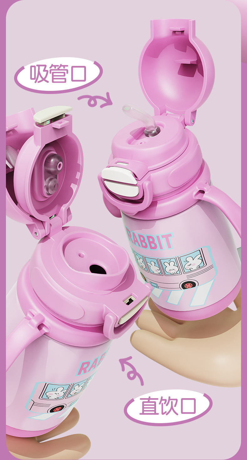 밀짚 스케일 316 스테인레스 스틸 절연 여성 학생 주전자 마시는 컵 휴대용 학습 더블 사용 어린이 보온병 컵스토어 가기