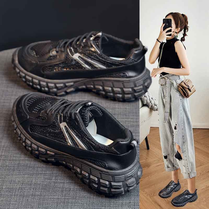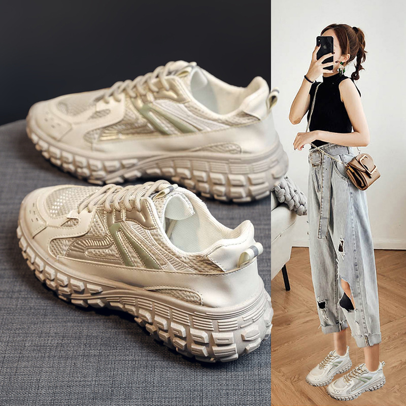토레 신발 두꺼운 단독 운동화 올매치 캐주얼 타이어 신발 여성 신발 여성을위한 새로운 메쉬 유행 흰색 신발