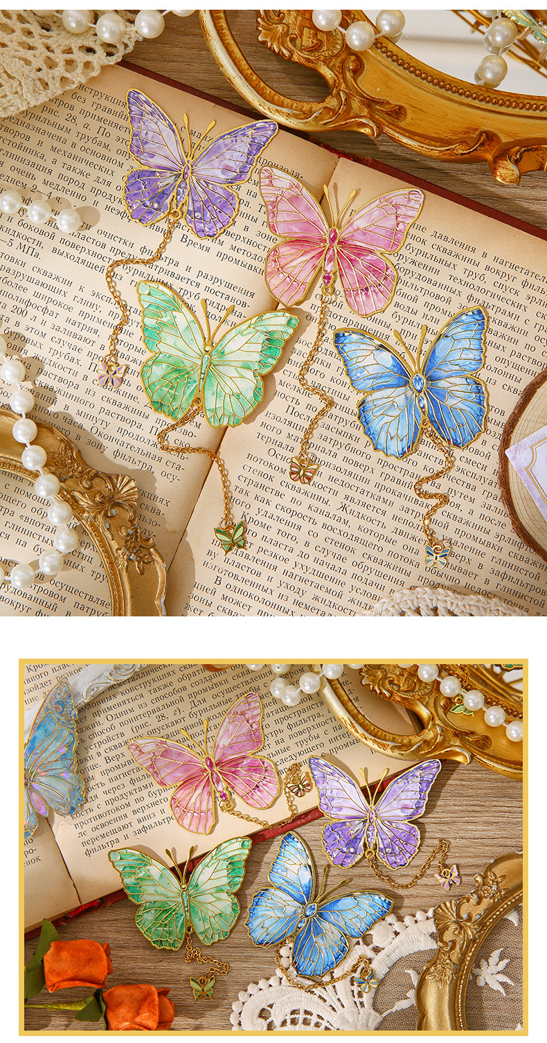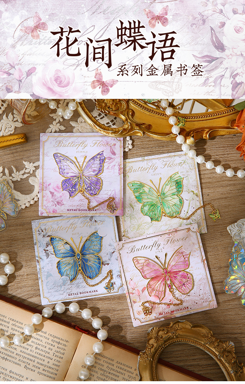 꽃 스파이 언어 시리즈 금속 책갈피 학생 예술 팬 나비 금속 책갈피 창조적 인 선물 북마크스토어 가기