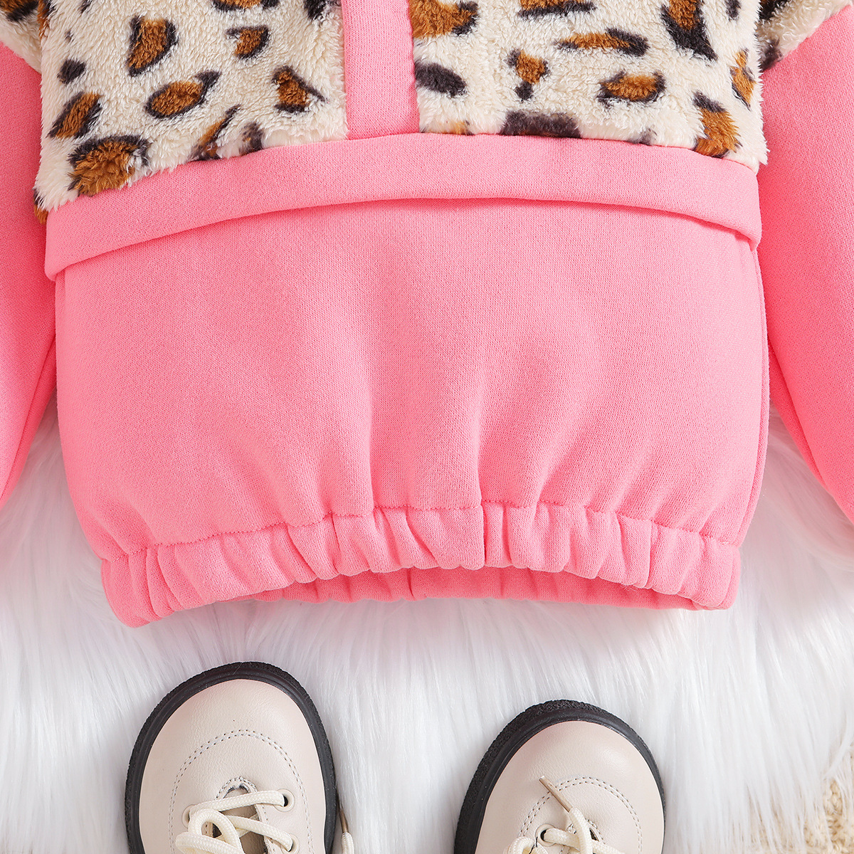 대외 무역 아동복 소녀 가을과 겨울 봉제 스웨터 2024 새로운 아기 소녀 패딩 기모 레오파드 무늬 스티칭 탑