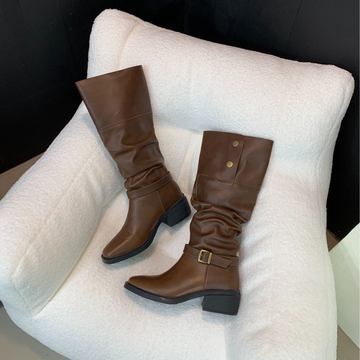 두꺼운 굽 복고풍 스택 롱 라이더 부츠 여성 신발 2024 새로운 가을 웨스턴 카우보이 롱 부츠스토어 가기