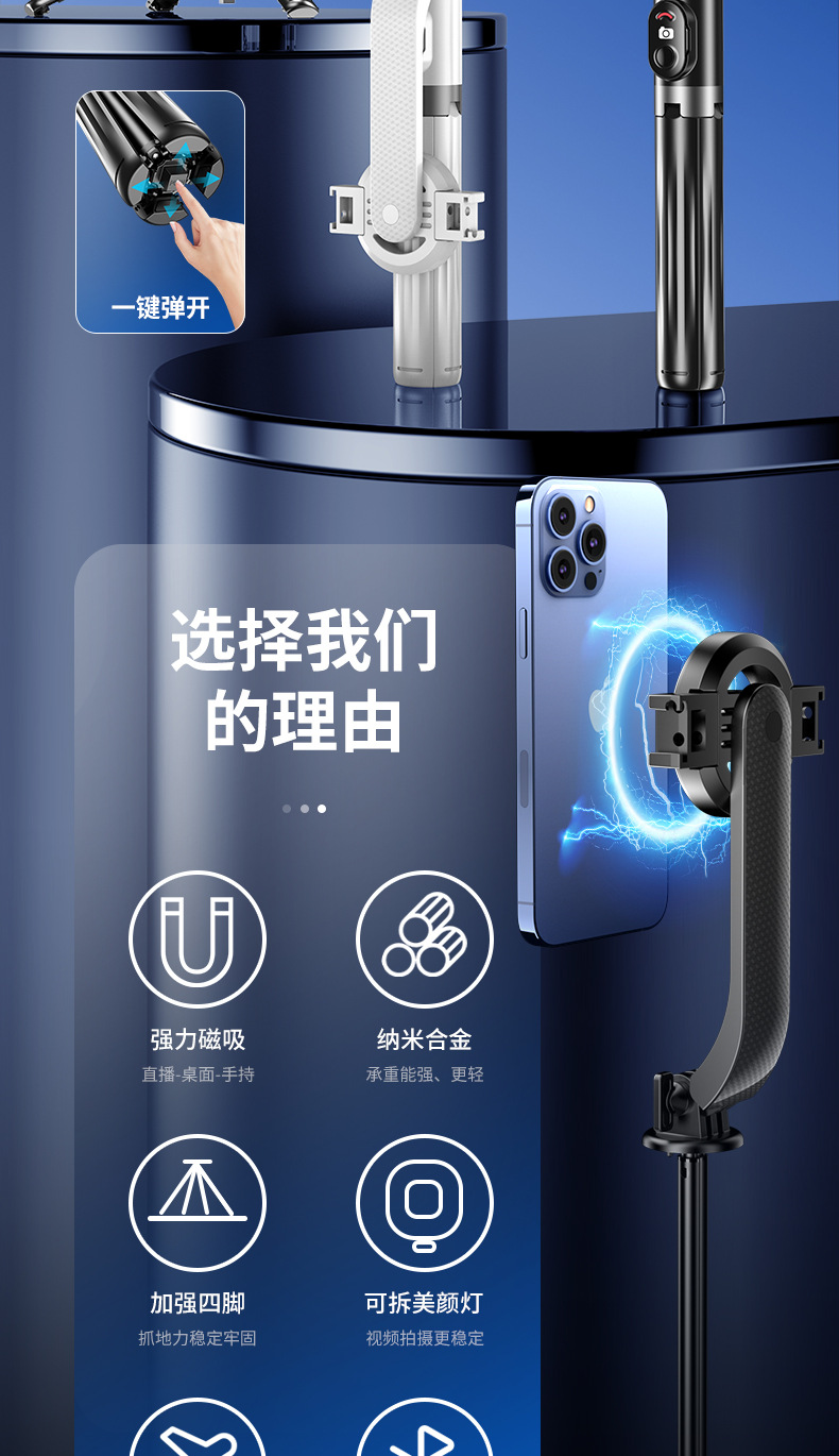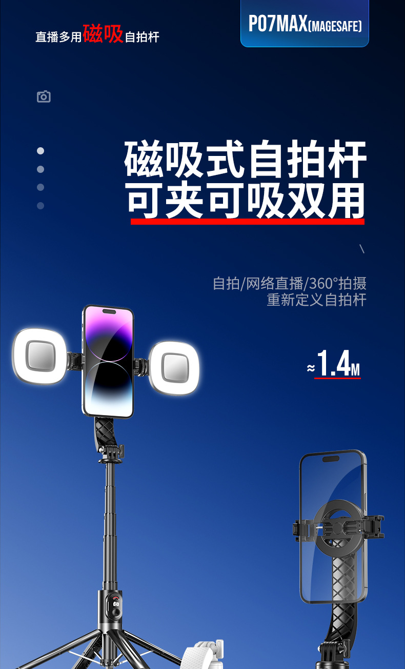 새로운 P07MAX 자기 흡입 휴대 전화 셀카 스틱 유니버설 휴대 전화 라이브 방송 스탠드 블루투스 카메라 삼각대 셀카 스틱스토어 가기