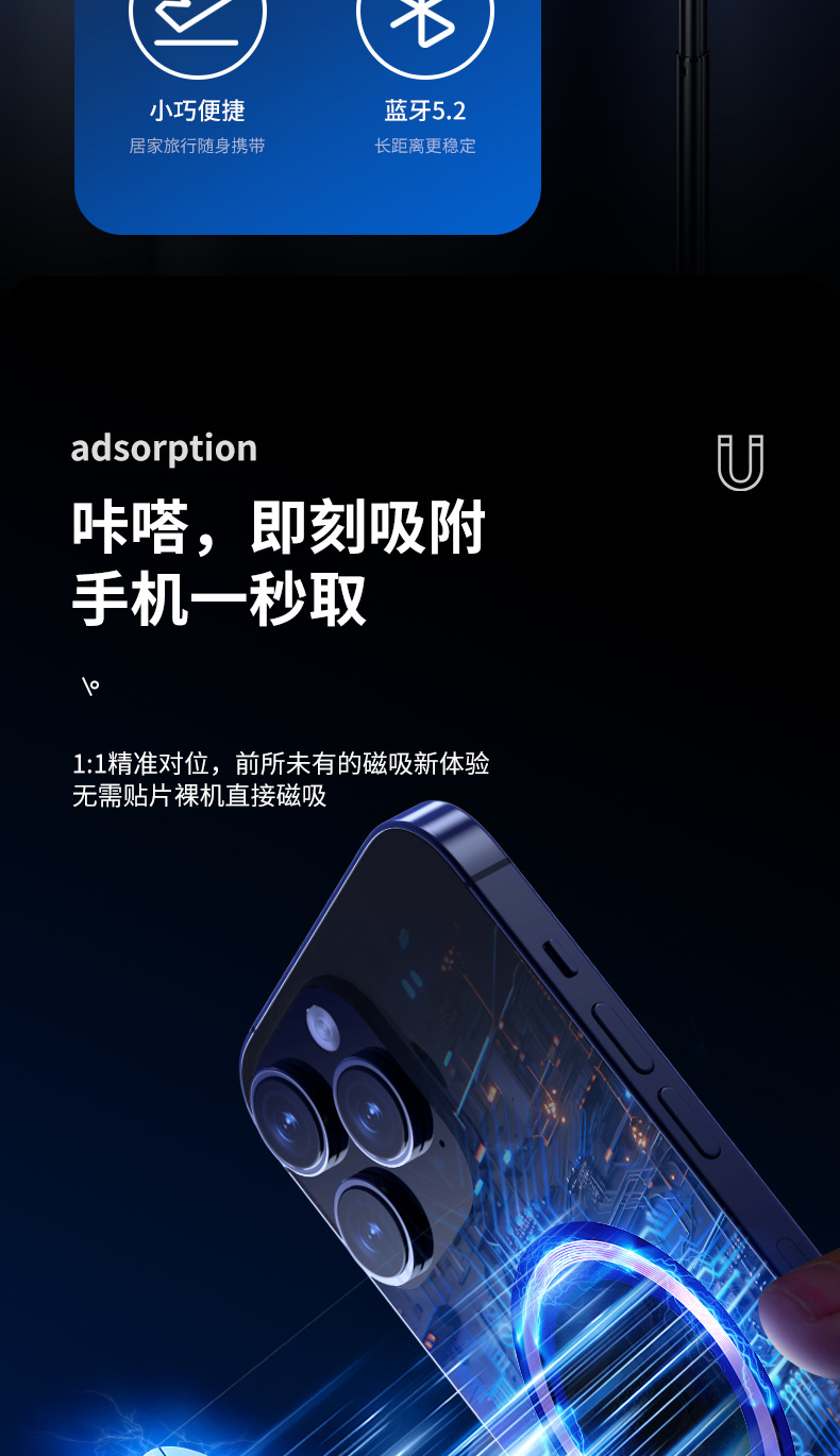 새로운 P07MAX 자기 흡입 휴대 전화 셀카 스틱 유니버설 휴대 전화 라이브 방송 스탠드 블루투스 카메라 삼각대 셀카 스틱