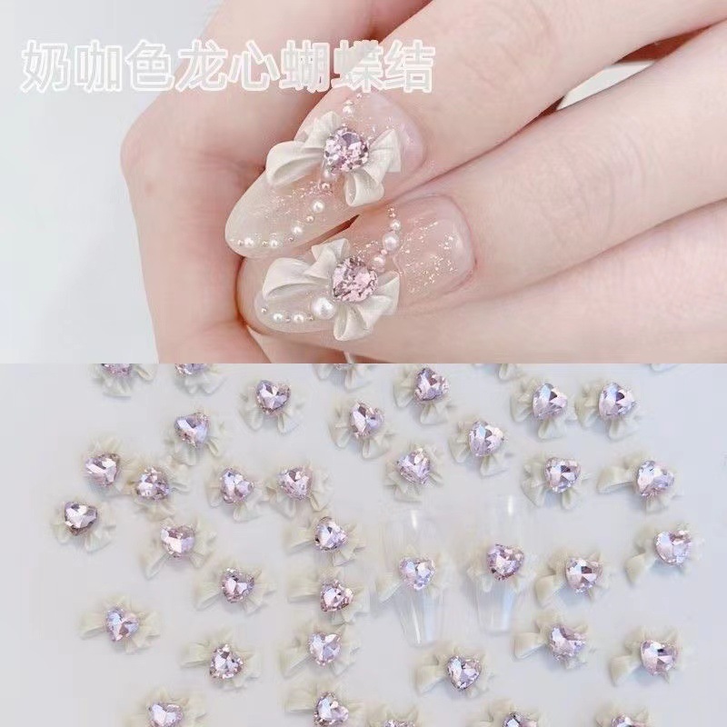 새로운 인터넷 연예인 핫 로즈 파우더 드래곤 하트 보우 네일 아트 쥬얼리 스위트 플래시 다이아몬드 소녀 하트 네일 장식스토어 가기