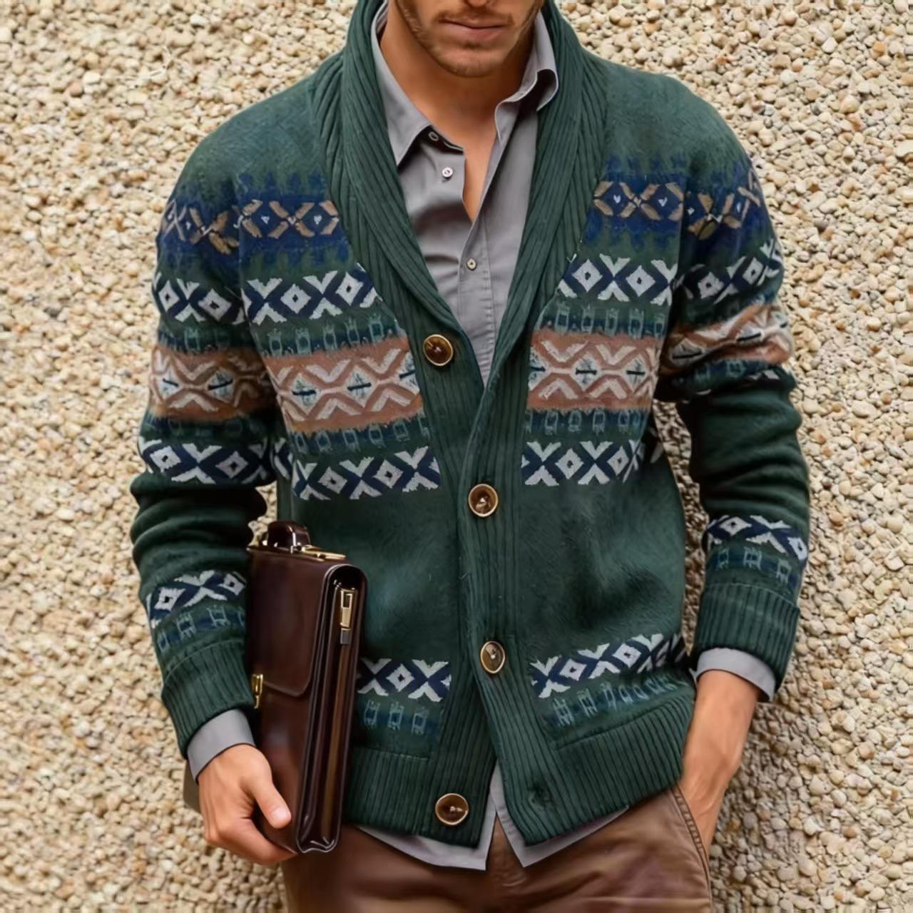 국경 간 새로운 미국 레트로 V 넥 니트 카디건 남자 가을과 겨울 새로운 양모 스티칭 스웨터 외부 풀오버