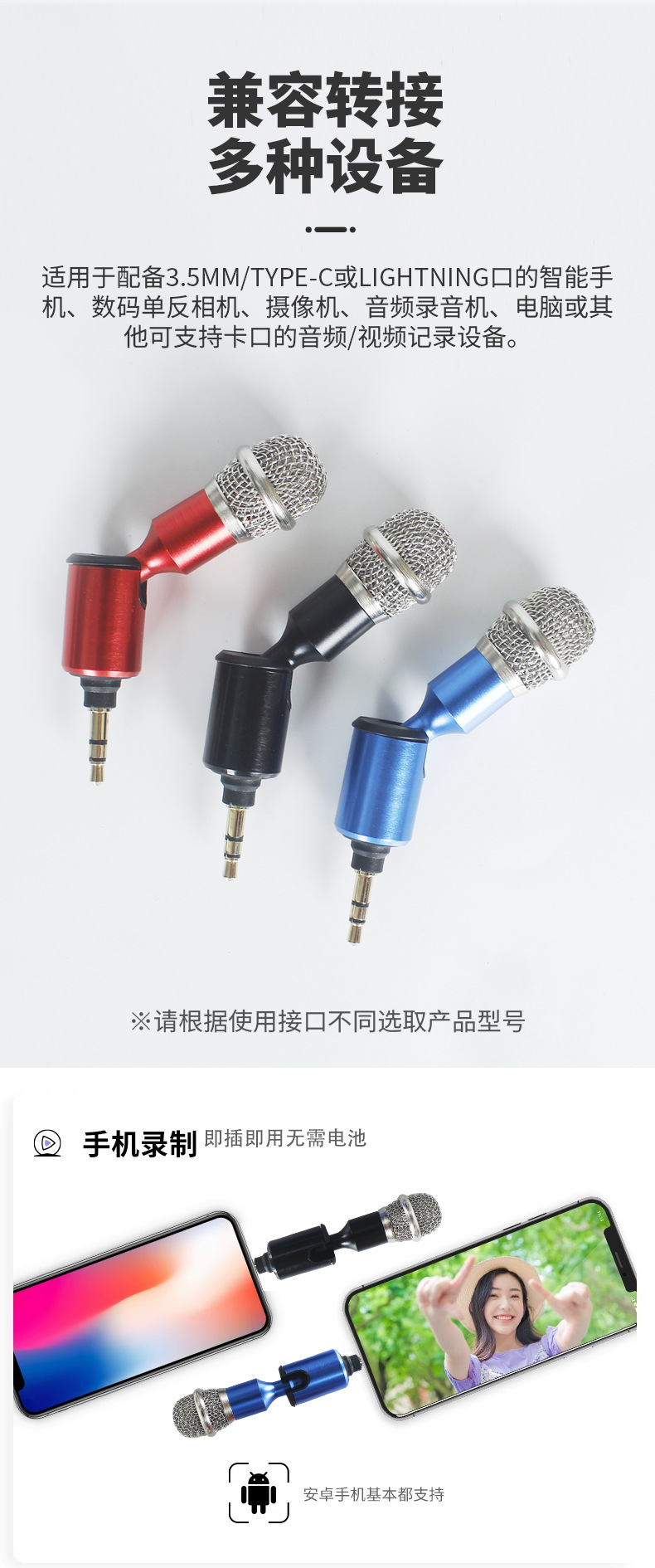 금속 미니 마이크 휴대용 무선 소음 감소 야외 라이브 녹음 휴대 전화 노래방 커패시터 마이크 인라인