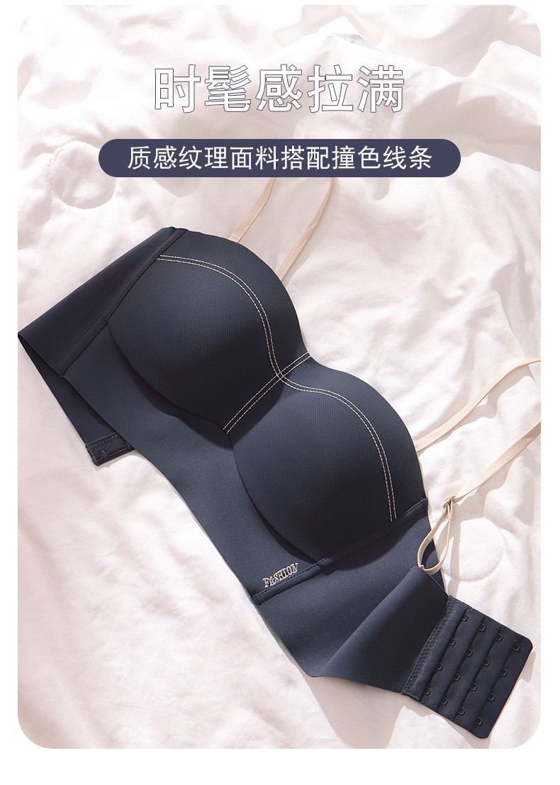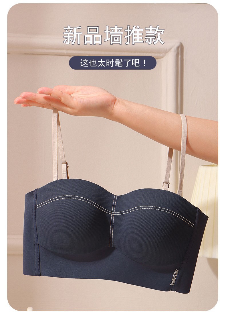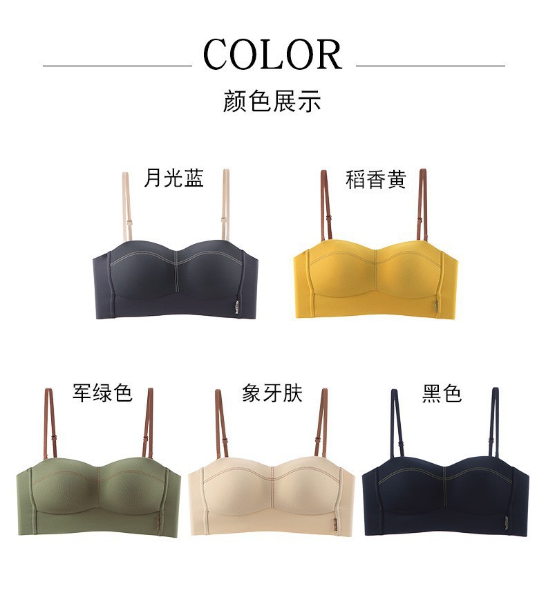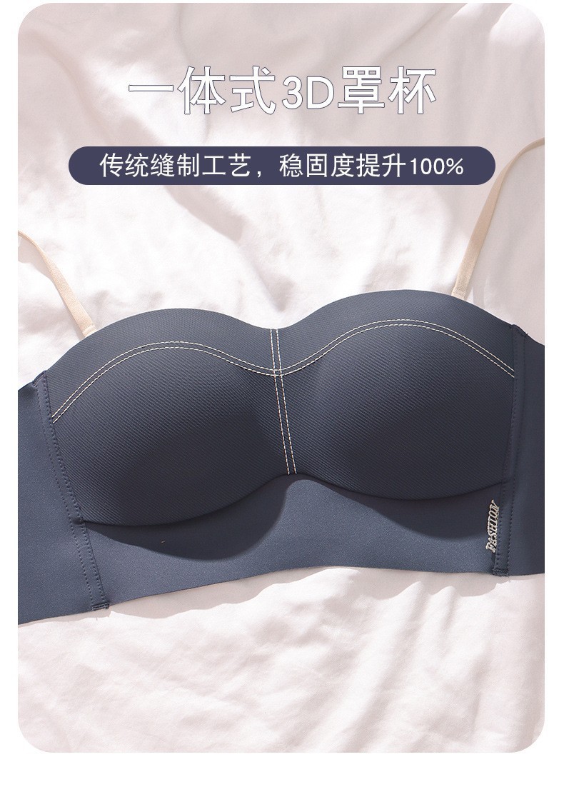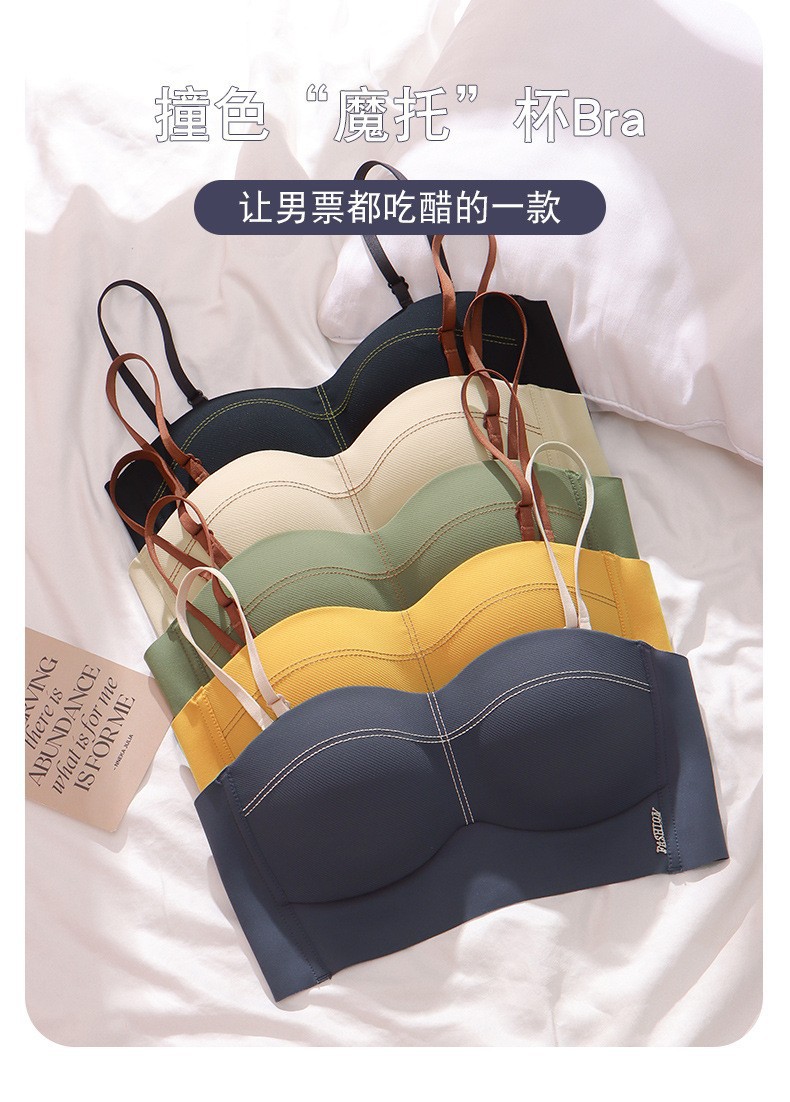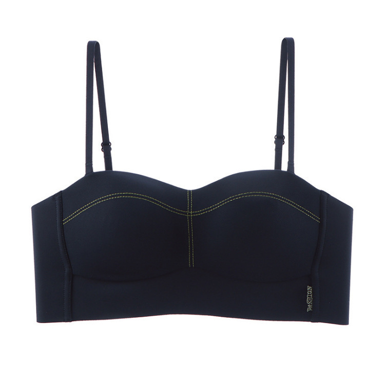 6059牛仔风撞色一体式3D罩杯抹胸内衣高侧比中厚侧收聚拢裹胸文胸