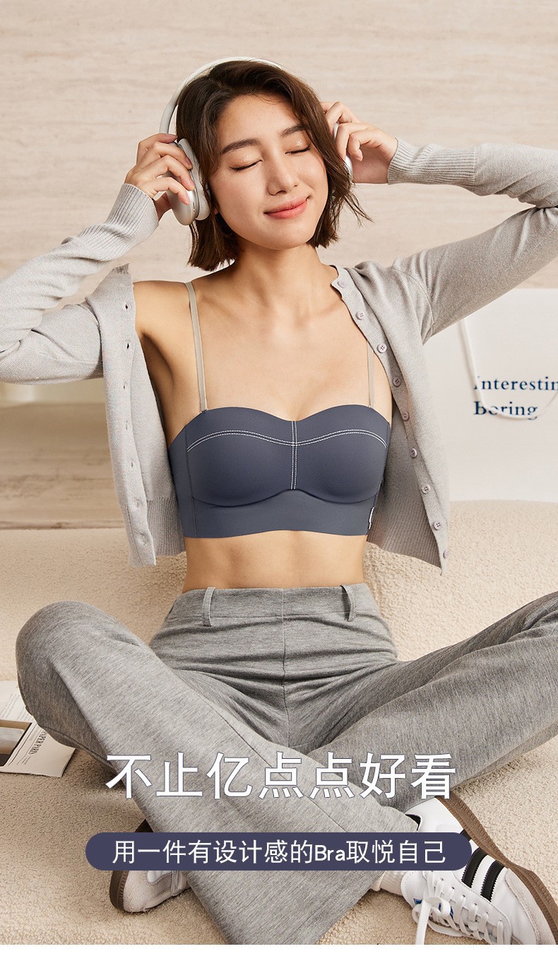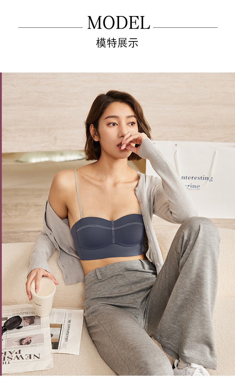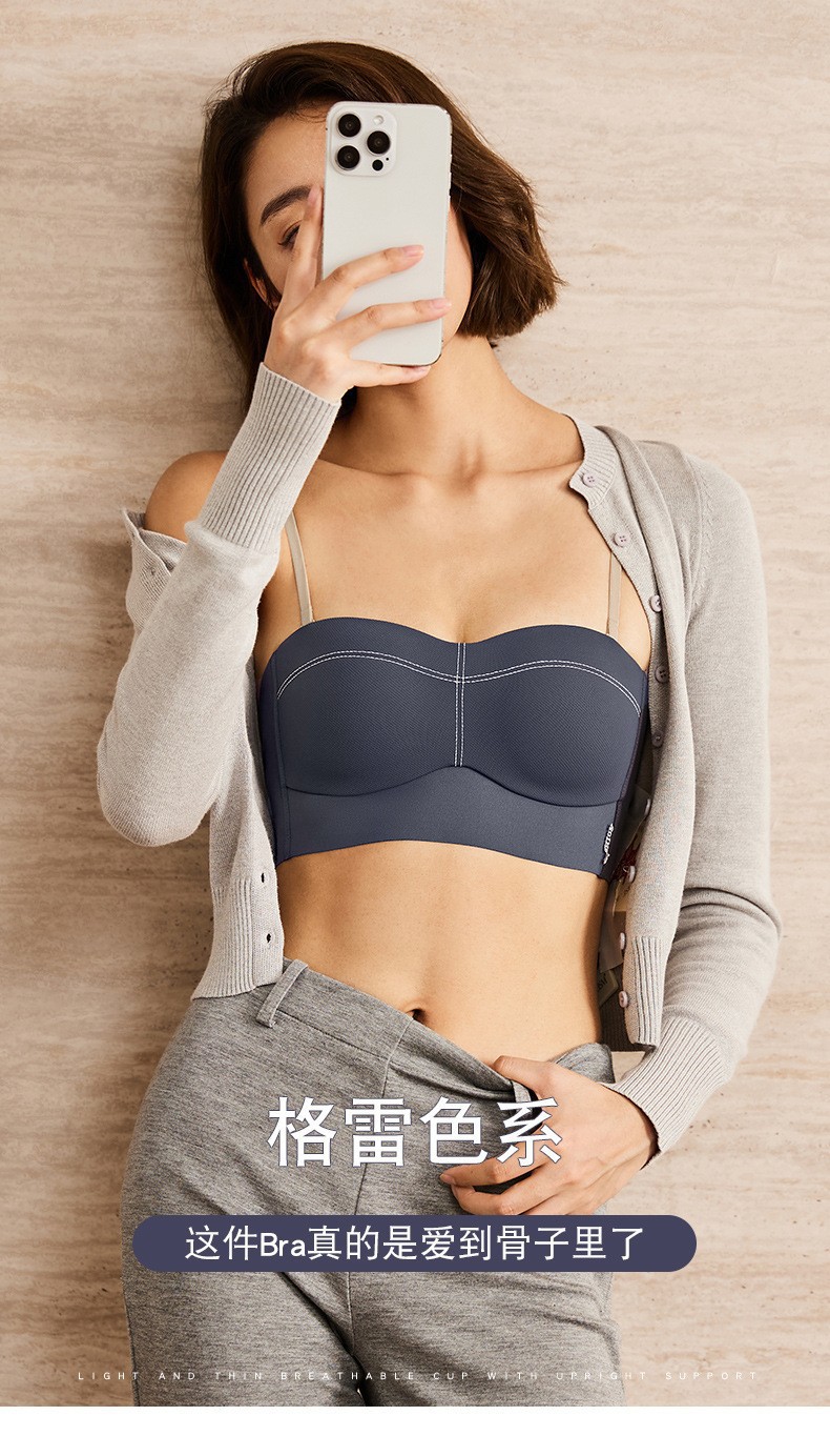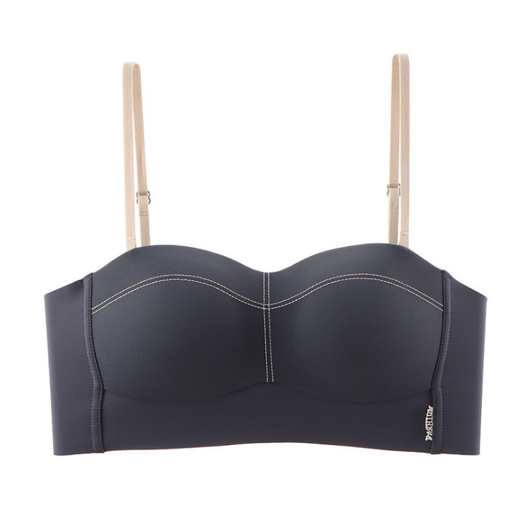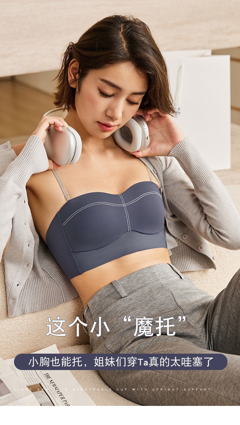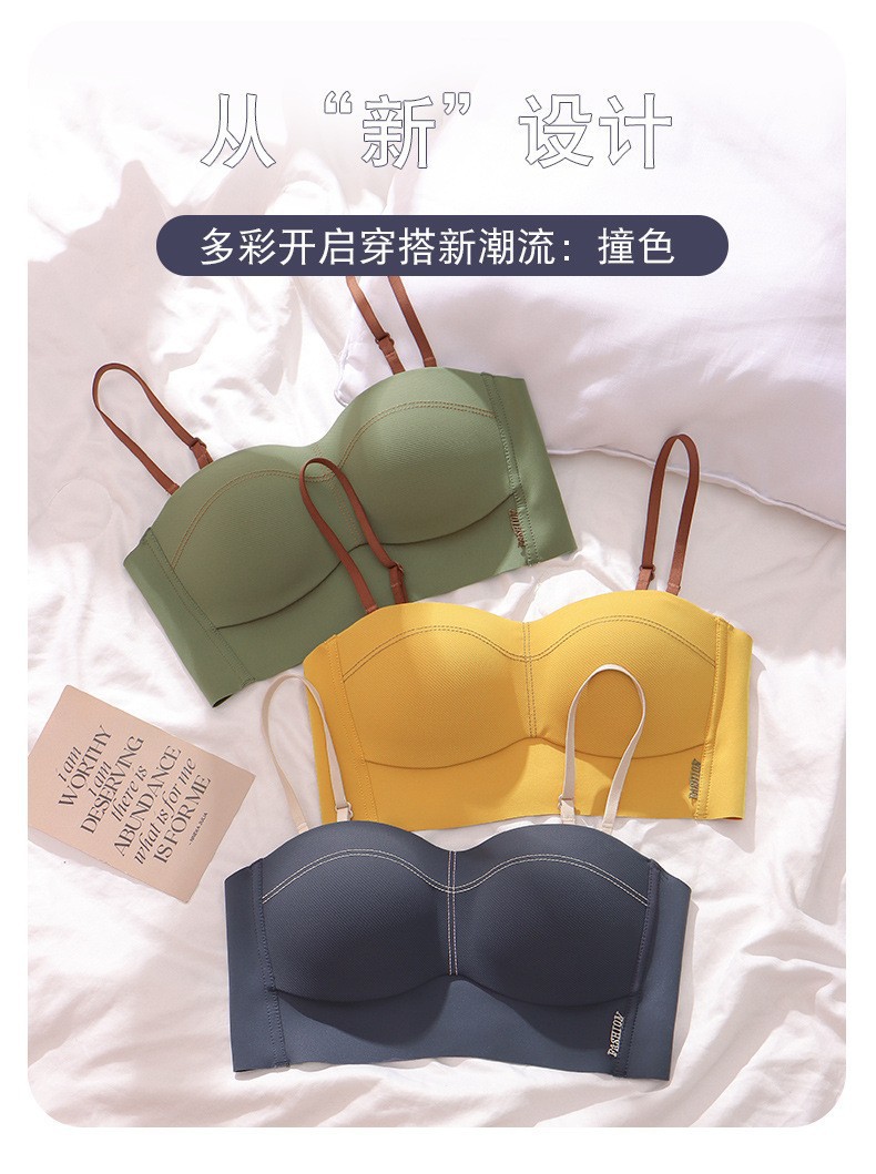 6059牛仔风撞色一体式3D罩杯抹胸内衣高侧比中厚侧收聚拢裹胸文胸