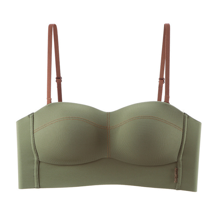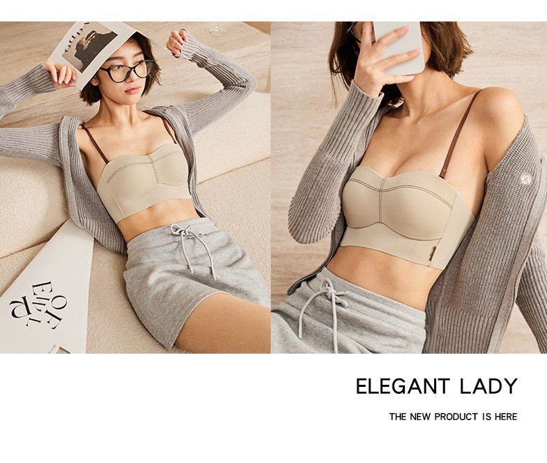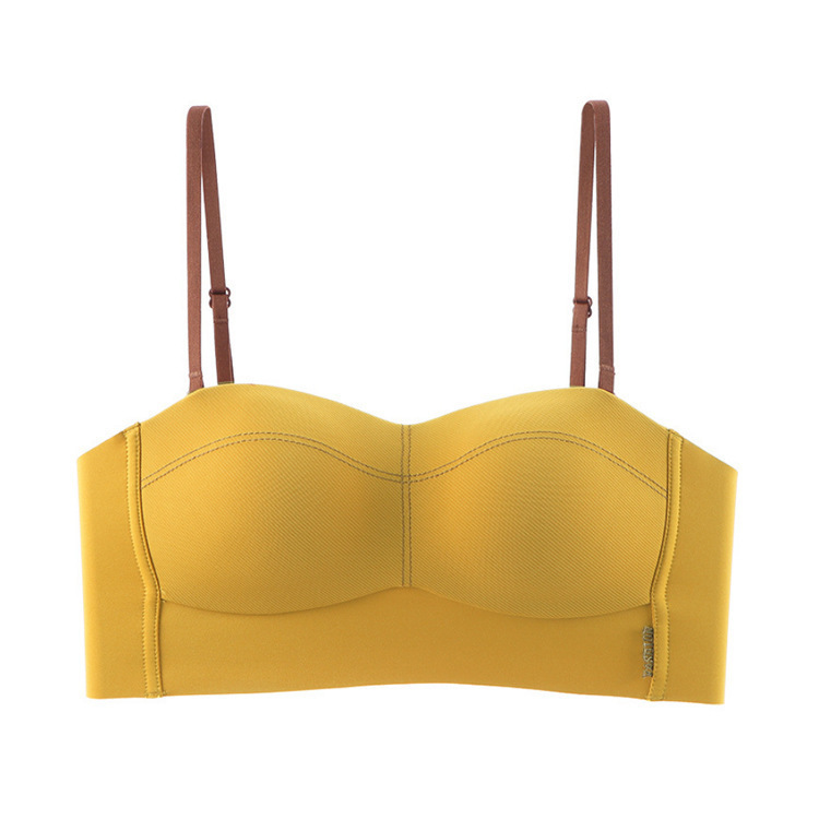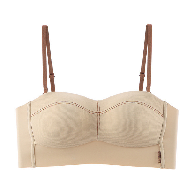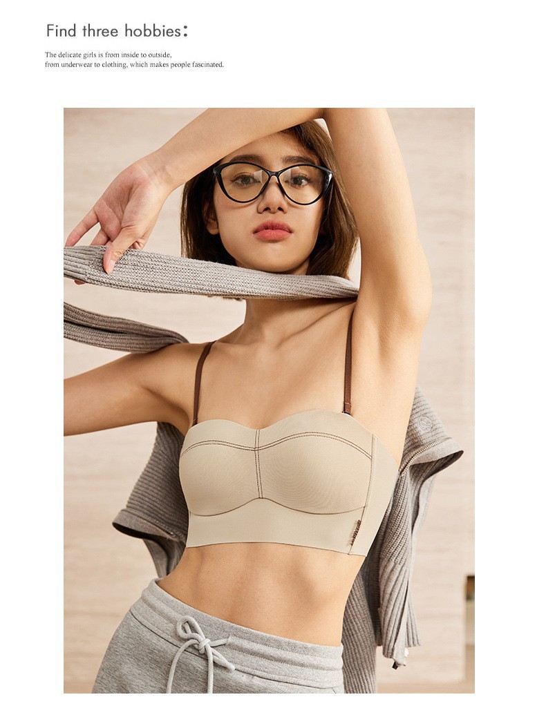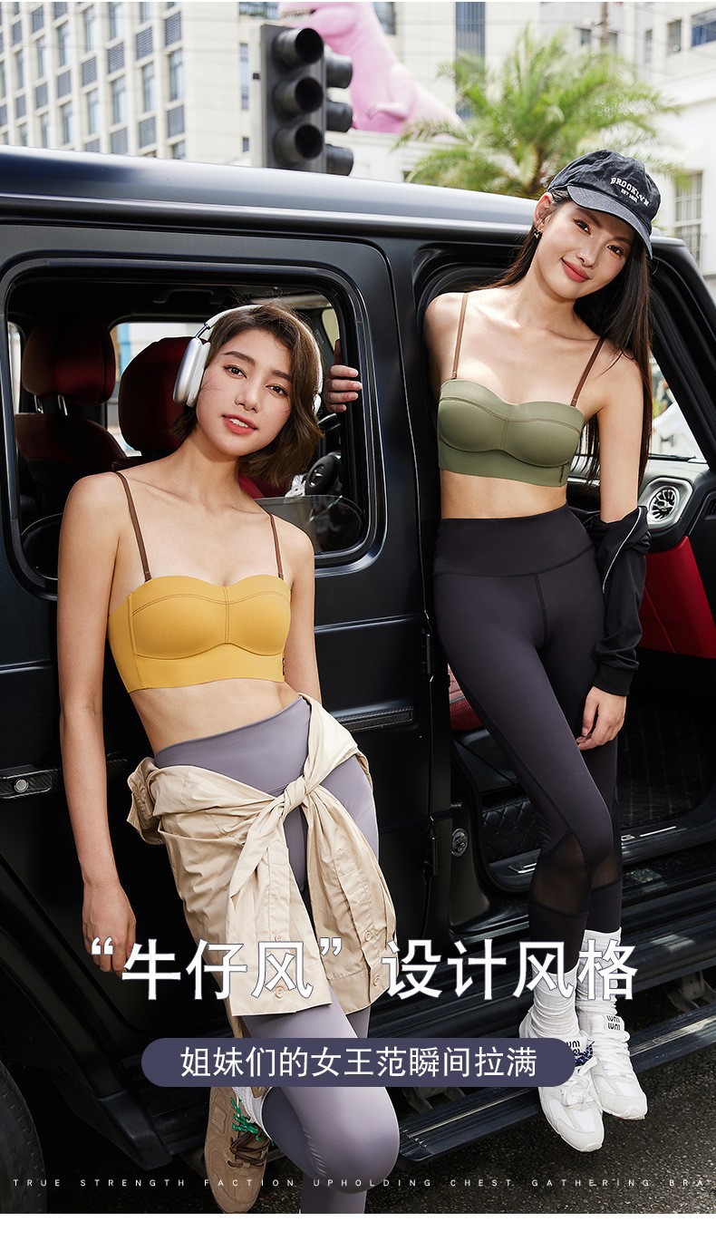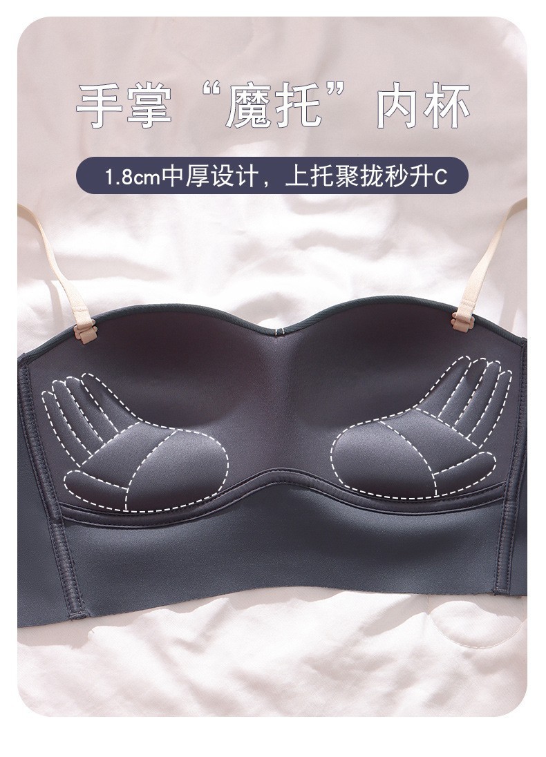6059牛仔风撞色一体式3D罩杯抹胸内衣高侧比中厚侧收聚拢裹胸文胸