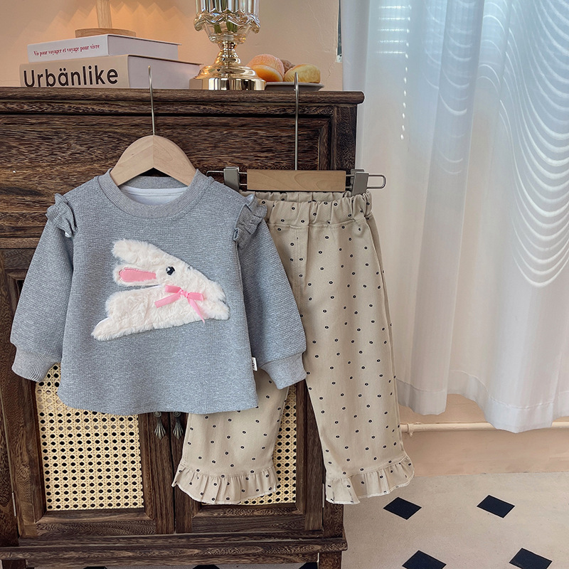소녀 가을 원피스 세트 2024 새로운 스타일 여름 아기 소녀 유행 서양 스타일 활 반팔 어린이 크레인 바지 유행스토어 가기