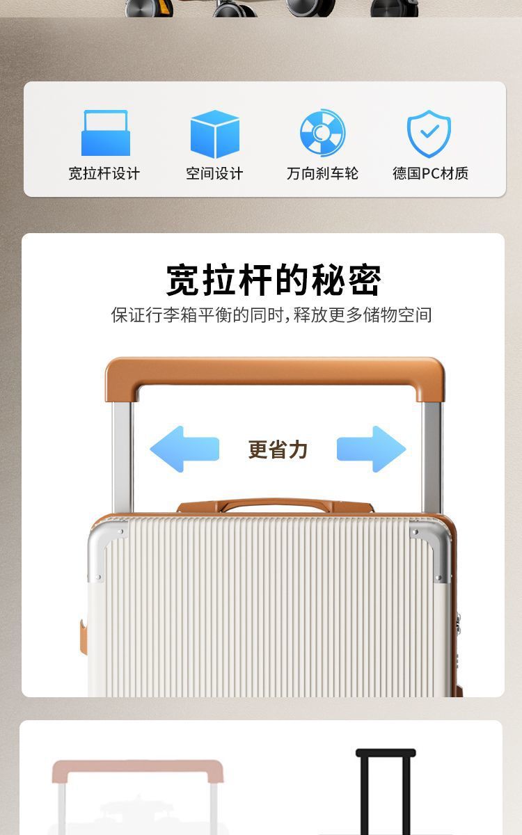 新款大容量宽拉杆行李箱结实耐用拉杆箱多功能密码箱箱子旅行学生