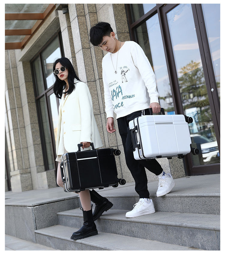 새로운 알루미늄 프레임 유니버설 휠 트롤리 케이스 남녀 수화물 학생 대용량 패션 가방 두꺼운 암호 상자스토어 가기