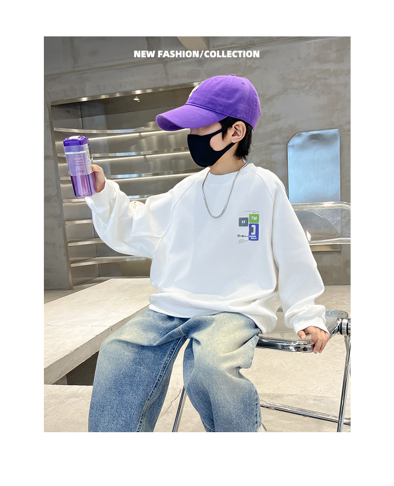 남아용 스웨트셔츠 봄가을 2026년 신상 아동 봄옷 상의 중대형 아동용 봄 흰색 이너웨어/베이스레이어 셔츠 트렌디