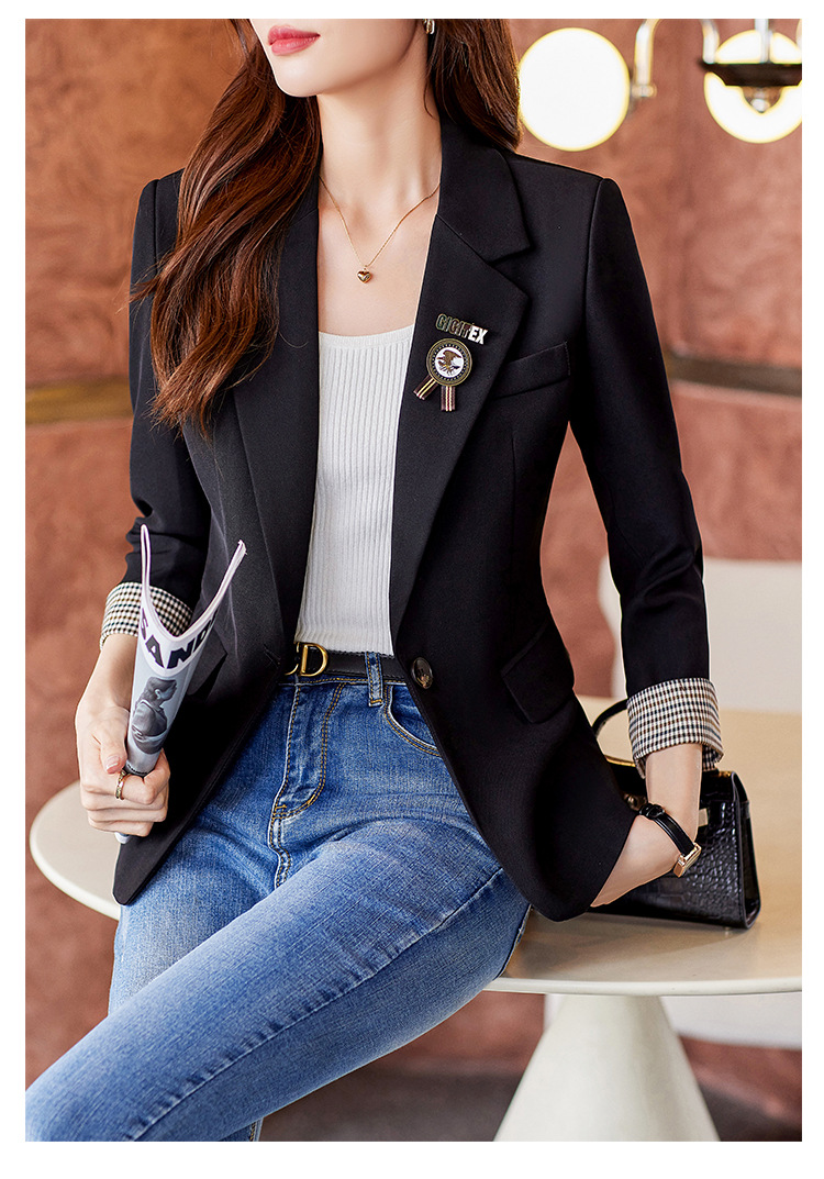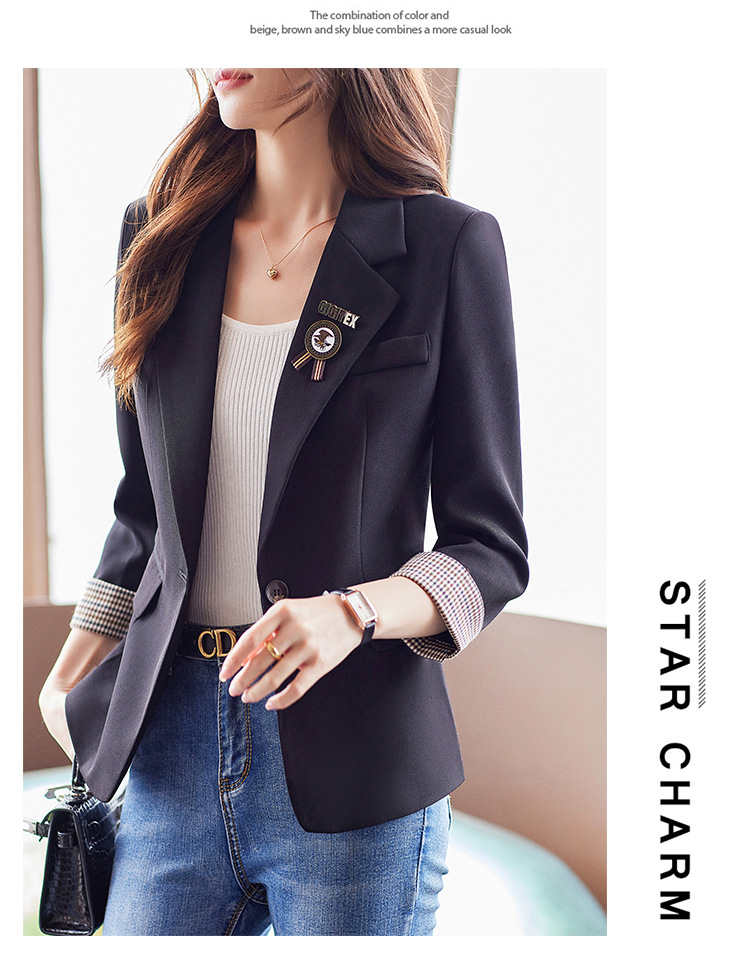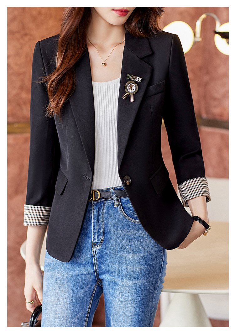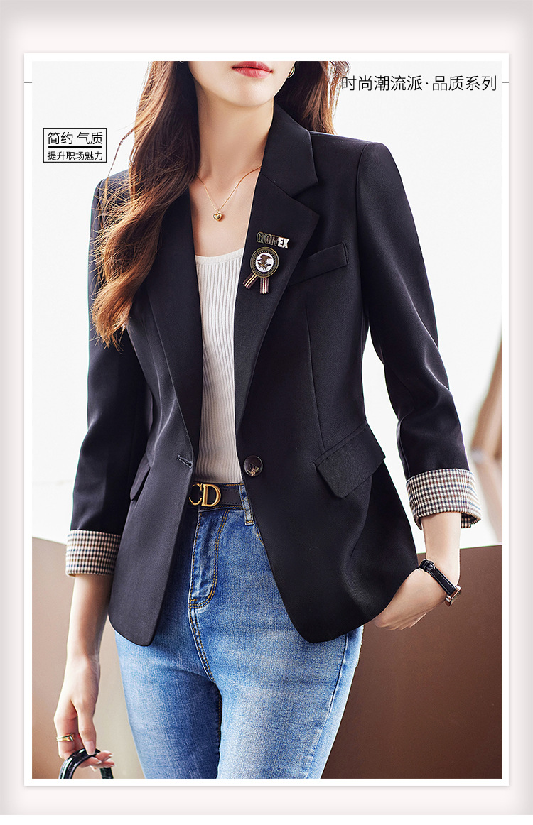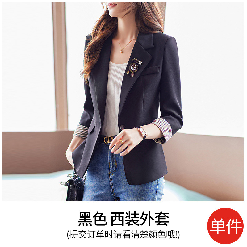검은 작은 세트 재킷 여성의 짧은 작은 봄 2024 새로운 슬림 핏 허리 캐주얼 세트 탑스토어 가기